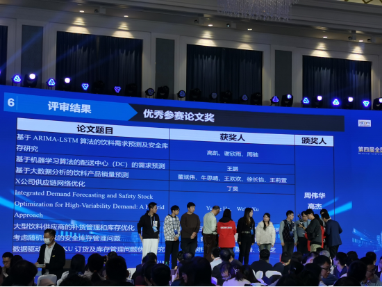 管理科学与工程研究生吴晓波宣读论文《突发事件下考虑韧性的食品供应链中政府、企业和消费者演化博弈决策》、刘小琴宣读论文《数据驱动下的SKU订货及库存管理问题优化研究》并获得实践驱动研究竞赛优秀论文奖。