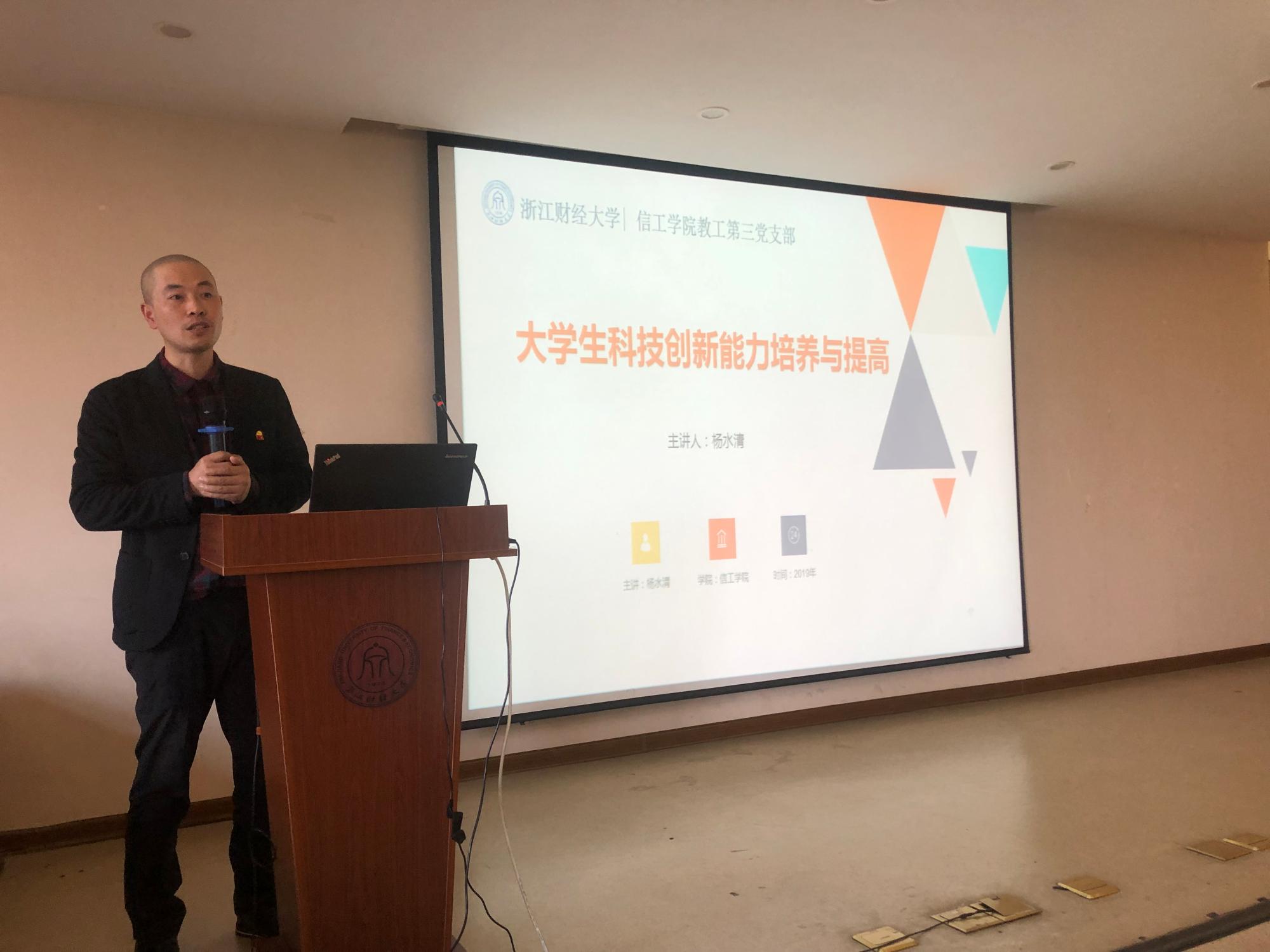 10月17日下午,学生第三党支部于9号楼302召开“大学生科技创新能力培养与提高”专题博士讲堂,本次博士讲堂由杨水清老师主讲,现场与会成员有党支部书记毛立晨老师,学生第三党支部全体党员和预备党员。