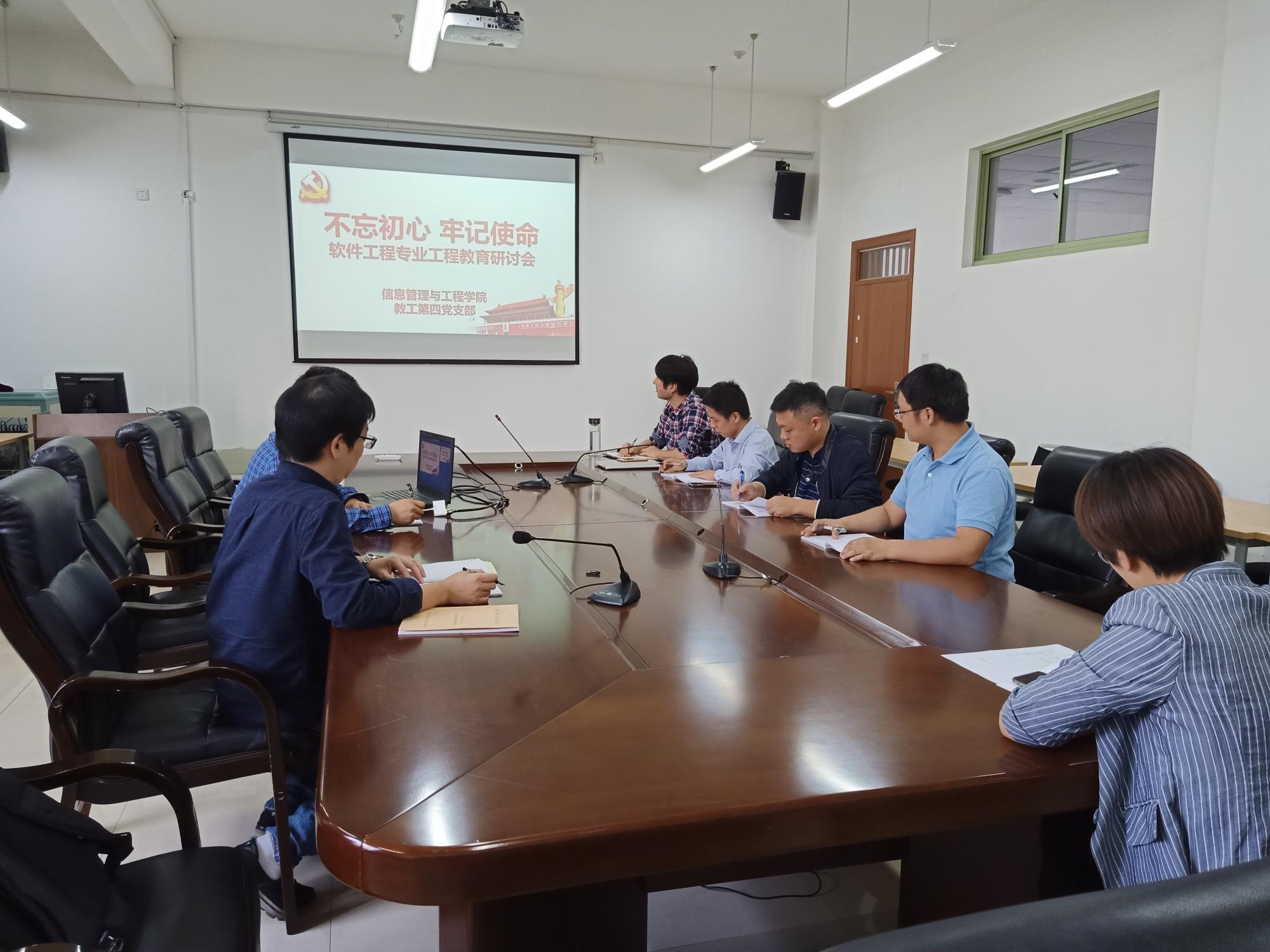 10月17日,教工第四党支部在9404会议室召开软件工程专业工程教育研讨会,会议由软工系主任周志光同志主持,支部全体党员和软工系部分骨干教师参加了本次会议。
