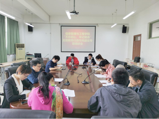 10月29日,信工学院组织召开“不忘初心,牢记使命”主题教育行政作风建设专题调研会,会议由学院党委副书记陆颋浩主持,学院管理服务人员以及各党支部书记参加。