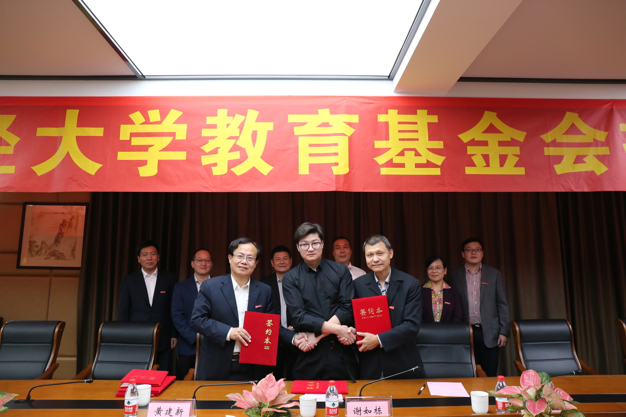 最后,谢如栋校友、黄建新副书记、张文宇院长签订“遥望基金”捐赠协议,黄建新副书记代表学校接收捐赠基金。校党委书记李金昌为谢如栋校友颁发捐赠证书。