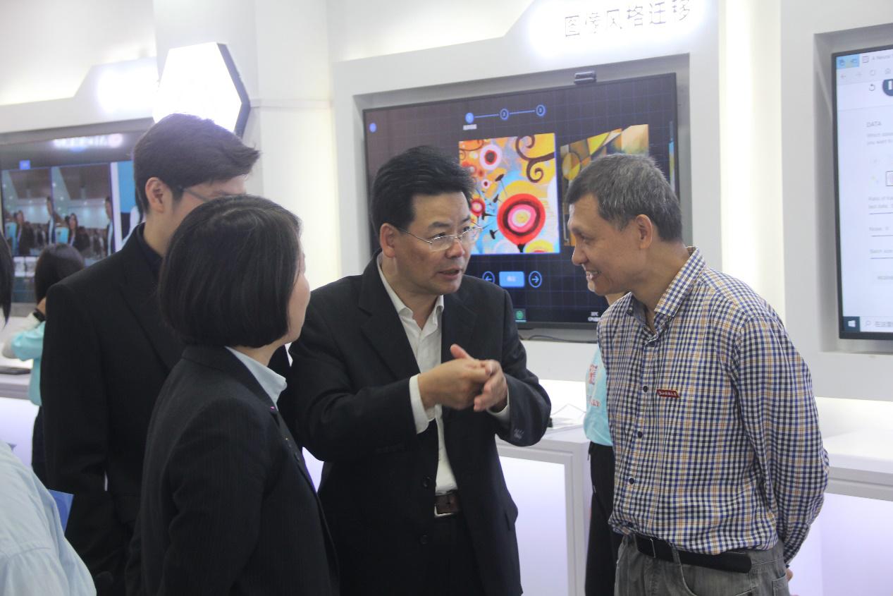 随后,与会领导嘉宾共同为人工智能体验园揭幕。揭幕仪式后,现场嘉宾们下在工作人员的带领下,有序入园参观,依次体验了语音识别、视屏融合、人脸融合、可视化神经网络、VRMr体验区4.0智慧工厂,alpha go介绍和智慧学习等模块。参观中,励如孟副校长表达了他对人工智能体验园的诚挚祝福与殷切期盼,认为这是推动人工智能理念在青年学生中传播的有效途径,全校学生应当有效利用体验园资源,提升自身的科学素养,跟上时代发展的节奏,做新时代的浙财人。