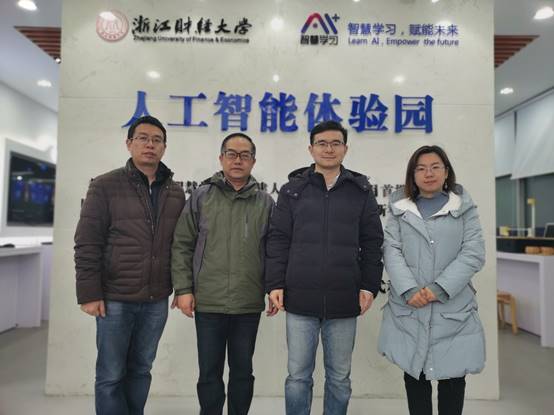的专业设置和人才培养、实验室建设等情况。张登辉副院长介绍了浙江树人大学信息科技学院的专业概况和办学特色,此次来访正值学校人工智能实验室建设的筹划期,看到浙江财经大学在AI+经管特色的人工智能体验园建设特色,前来学习考察。双方围绕着高校人工智能专业的人才培养,实验室建设,实验教学与管理等内容展开了深入的交流。