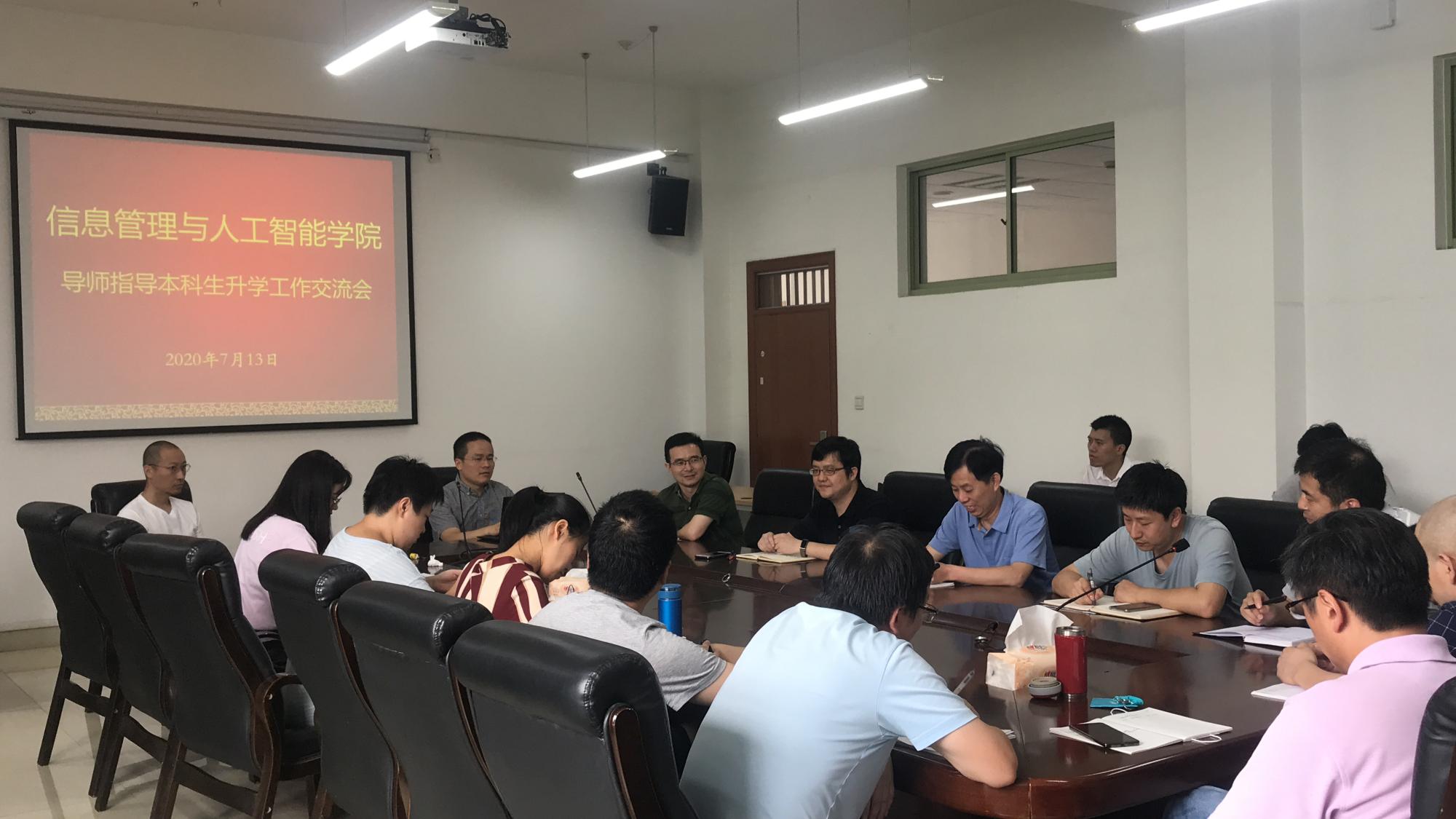 7月13日下午,信息管理与人工智能学院综合导师辅导学生考研出国经验交流会在9404召开,院长张帅、院党委书记徐奇伟、副院长陈远高、院党委副书记田聪、各系主任、各党支部书记以及2017级本科生综合导师参加会议,会议由副院长陈远高主持。