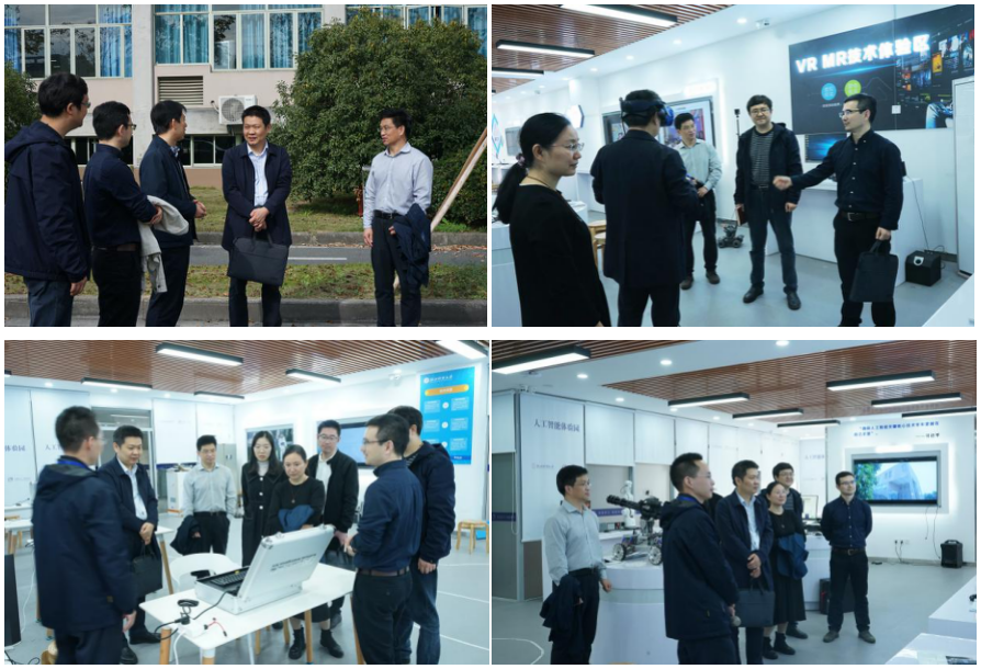 会后,戴主任一行还饶有兴趣的参观了人工智能体验园,对机器感知区的语音识别与合成系统、人脸融合系统、图像风格迁移系统和可视化神经网络,虚拟现实区的宜家VR系统,互动编程区的人工智能实验项目进行了详细的询问和亲身体验。对学院大力发展人工智能技术服务于浙江的数字经济建设给予了高度评价。