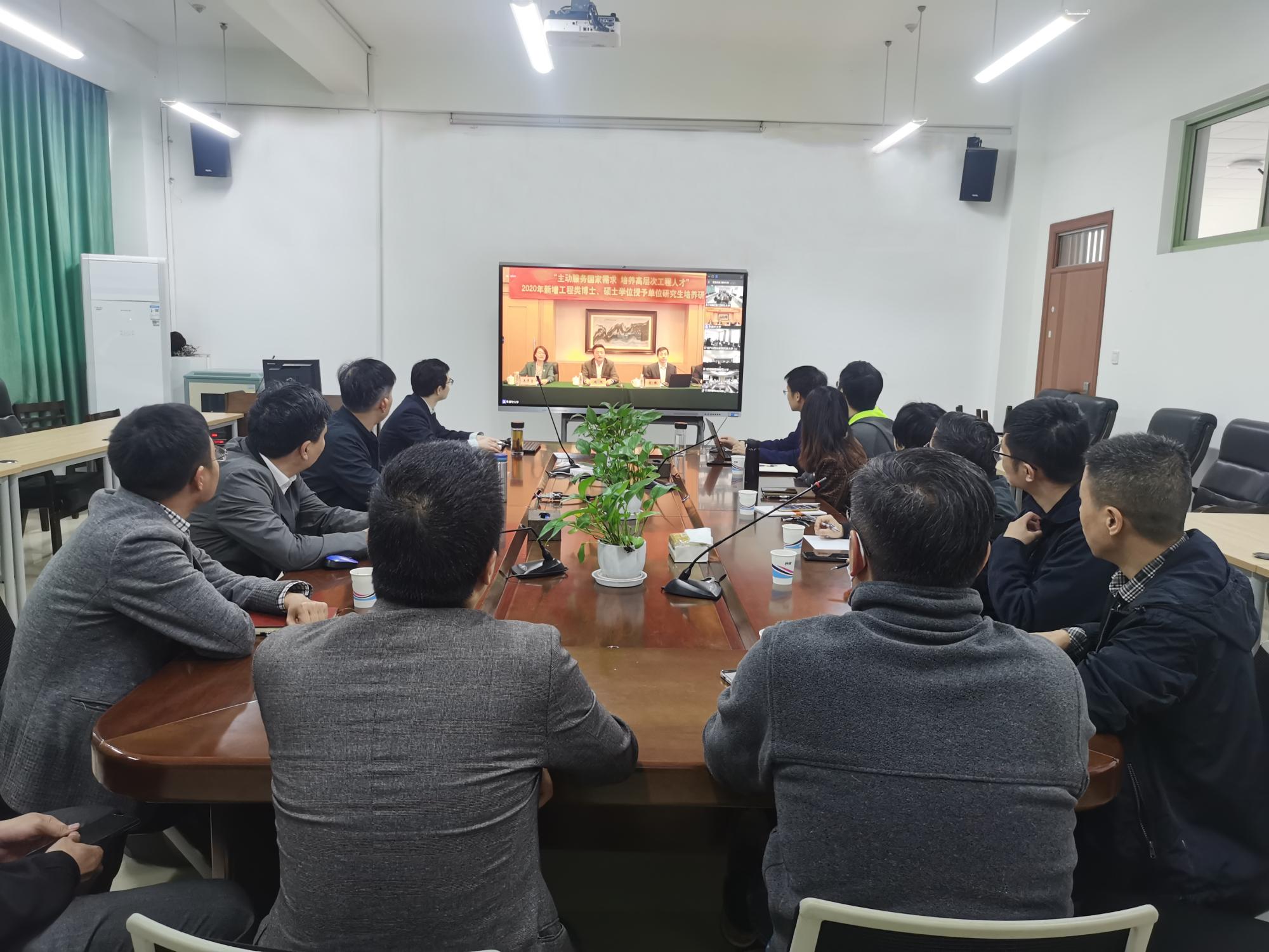作为本次新增工程硕士专业授权点单位,在学院9号楼404会议室设立会议分会场,研究生院副院长罗季、林剑、学院领导班子、电子信息专硕学位点骨干教师等20余人参加本次会议。