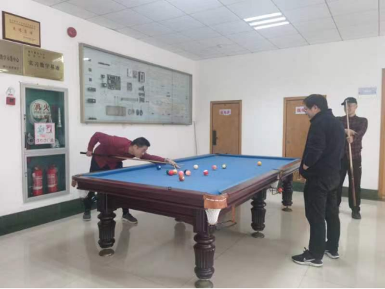 此次比赛分为初赛和决赛进行比赛,参赛教师首先进行小组赛选拔,然后小组前两名进入决赛进行最后比拼。比赛过程中老师们以饱满的热情和轻松的心态参与,一张一弛彰显绅士风范,一动一静尽显王者风采,精彩的球技引来观众的阵阵掌声。整个台球桌上充满了对台球炽热的斗气,充满了对比赛高昂的激情。