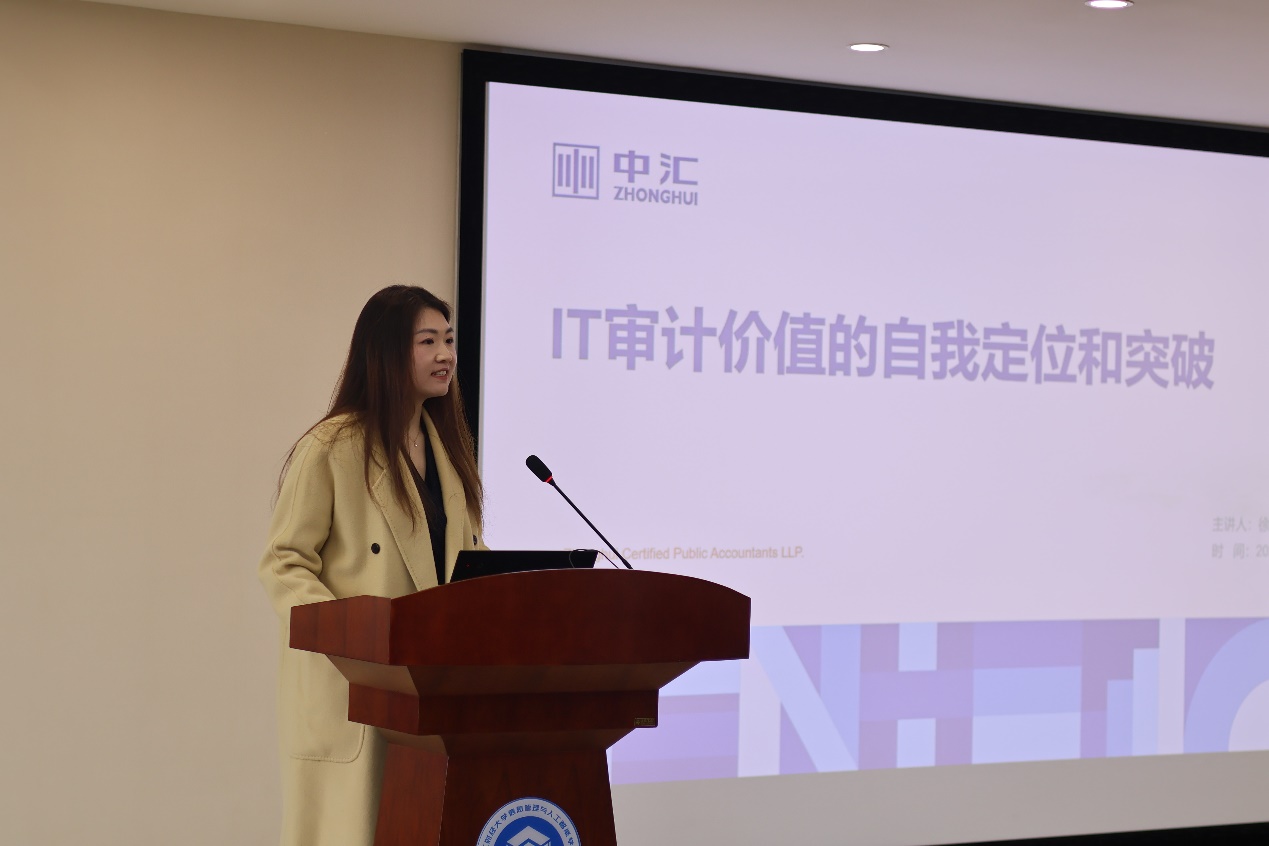 随后,浙江海瑞网络科技有限公司副总经理陈晗、中汇会计师事务所(特殊普通合伙)风险管理部合伙人徐婷婷分别作了题为“从风险管理到IT审计——网络合规领域面面观”、“IT审计实务案例讲解”的精彩演讲。