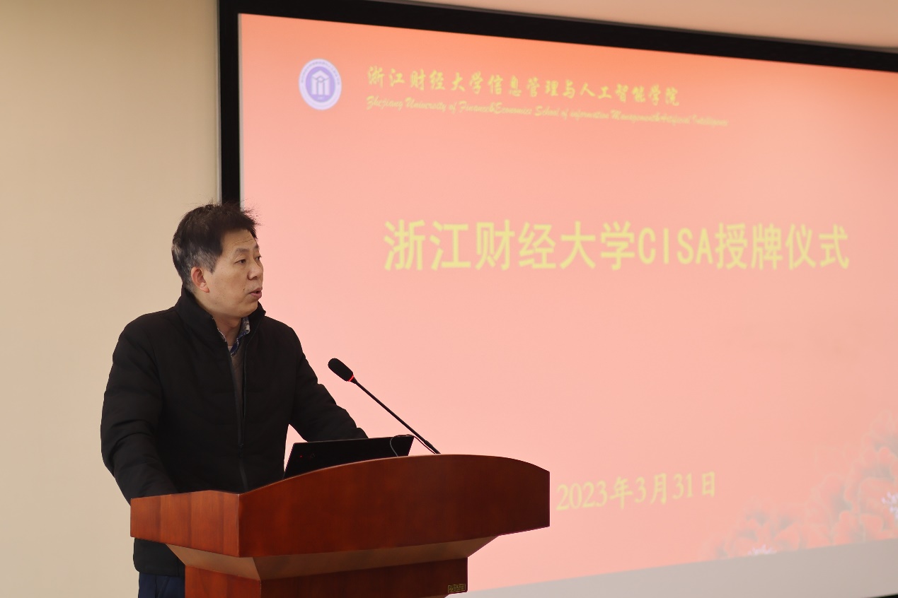 张帅教授发表致辞,回顾学院与ISACA的合作历程和取得的成绩,此次CISA授牌将推动雷速体育app