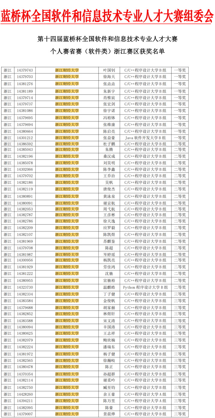 本届蓝桥杯省赛,我校共选拔出59位同学参赛,获得一等奖11人、二等奖23人、三等奖19人。