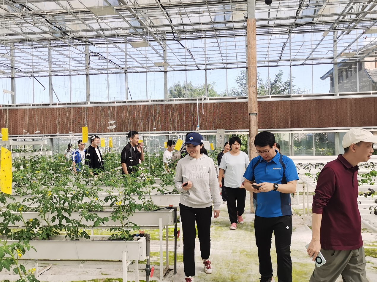 最后,大家来到了农作物采摘的环节。在农庄工作人员的带领下,大家参观了各种农作物种植培养,并亲手采摘了新鲜的果实。在寻宝式的采摘过程中,比一比谁摘的果实个大,品一品谁摘的果实特甜,老师们不仅体验到了收获的喜悦,还与同事分享了劳动的快乐。