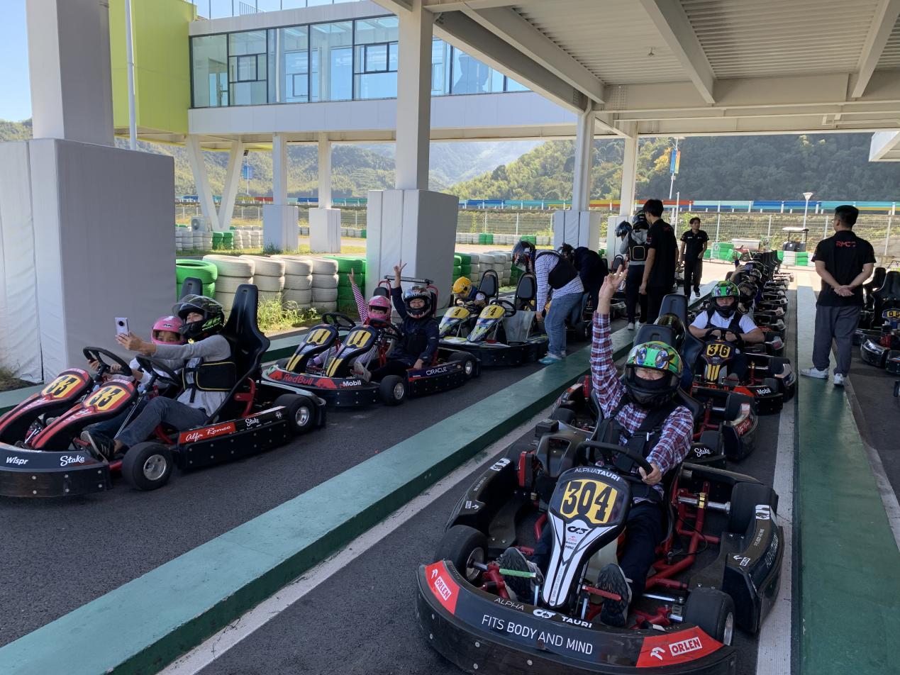 午餐后,大家来到了第二个目的地——赛车场。老师们纷纷穿上赛车设备,参与了刺激的赛车活动。在专业指导下,老师们迎风飞驰,感受着速度和激情。赛车场上,加油提速,超车急刹,手里紧紧握住方向盘,目光牢牢盯住前方,今天要在赛场上奋力飞驰,冠军我来了,高亢的呐喊声不绝于耳,回荡在整个赛道上。