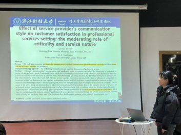四位同学轮流分享了他们的研究主题。吴芳同学分享了景区拥堵可视分析系统探索、监测和生成疏散路线的重要性。举例说明其在实际景区中的运用,并对其有效性和效率进行评估。陈昊同学介绍不同服务场景下服务机器人的应用,包括其在不同环境中的设计和功能需求。分析机器人在不同服务场景下的特性和需求差异。杨梨菁同学则探讨语言对注意力的影响,分析不同语言因素在引起注意力方面的作用。给出在文字或言语传播中吸引注意力的实际建议和策略。谢倩倩同学探讨人机合作在不同领域中的现状和发展趋势。举例说明人机合作在特定项目或行业中的应用,评估其效果和成效。