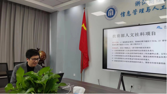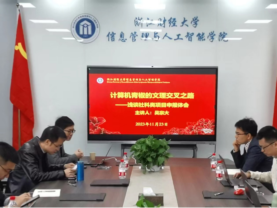 做了主题为“计算机青椒的文理交叉之路——浅谈社科类项目申报体会”的讲座,讲座由学院副院长隆清琦主持,学院青年博士教师和拟申报社科项目基金的教师参加。