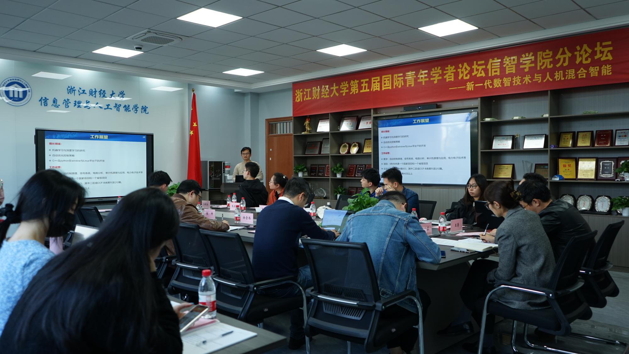11月22日,浙江财经大学第五届国际青年学者论坛在第四报告厅举行。学院召开分论坛-新一代数智技术与人机混合智能。5位来自法国贝尔福蒙贝利亚大学、意大利技术研究所、厦门大学、北京理工大学、哈尔滨工程大学等全球知名大学的青年学者与会。学院领导班子、学科带头人、系部办主任和学院师生等代表参会,本次论坛由副院长隆清琦教授主持。