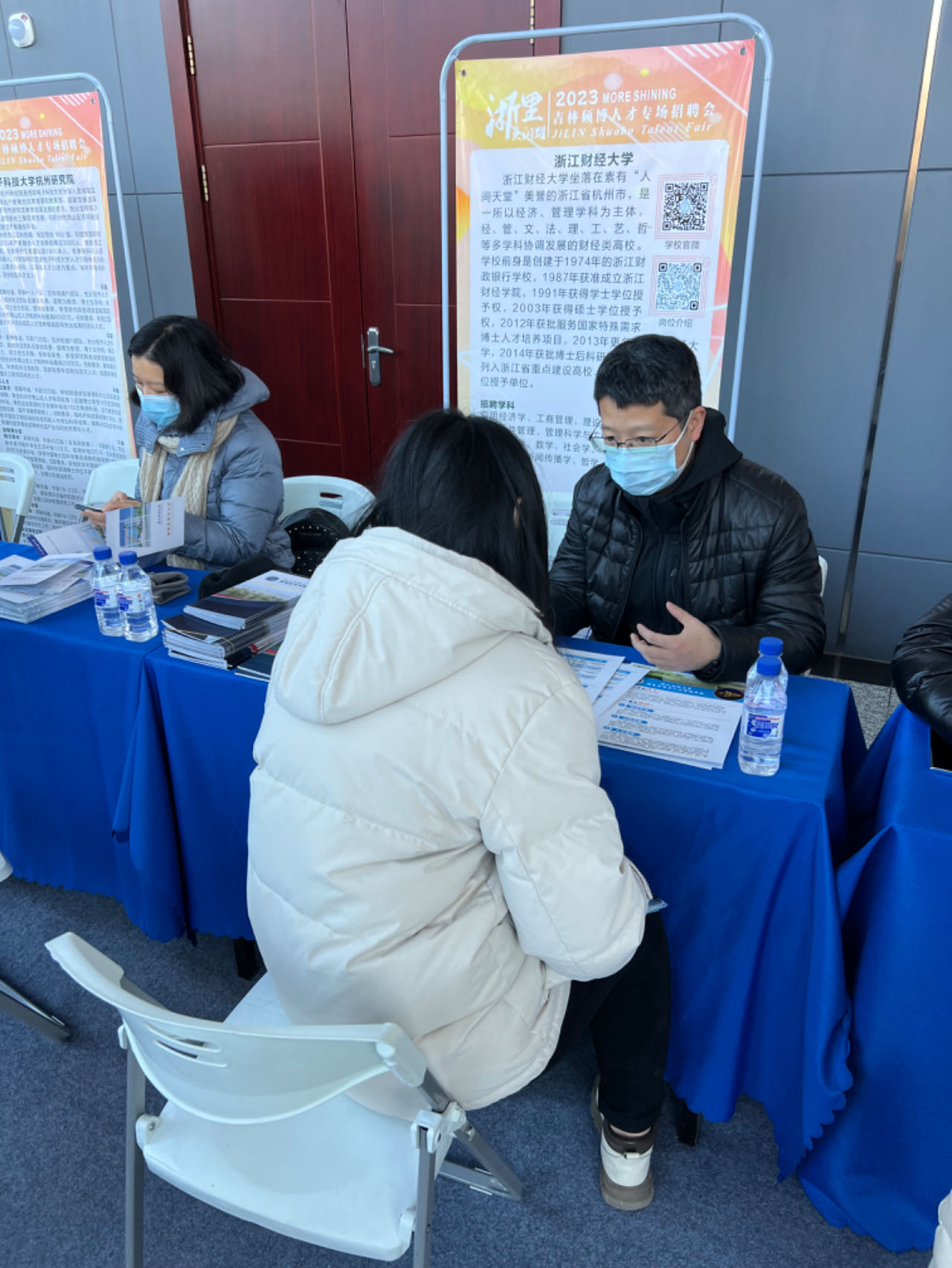 12月上旬,雷速体育app 信息化主管兼办公室主任徐吉锋参加2023浙里更闪耀—校园专场招聘会活动,走进国家“双一流”“985”高校吉林大学洽谈、引进高层次人才。共计收到简历10余份,与多位应聘者达成初步意向。