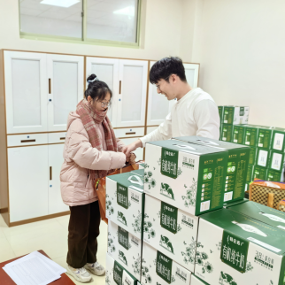 学院辅导员马硕为同学们发放慰问物资,并为他们送上温暖的祝福和问候。寒风凛凛,气温骤降,让学生们在寒冷的冬日感受到来自学院暖暖的温情,这是对冬日送温暖活动的初心——“心暖不惧寒冬”最好的诠释。