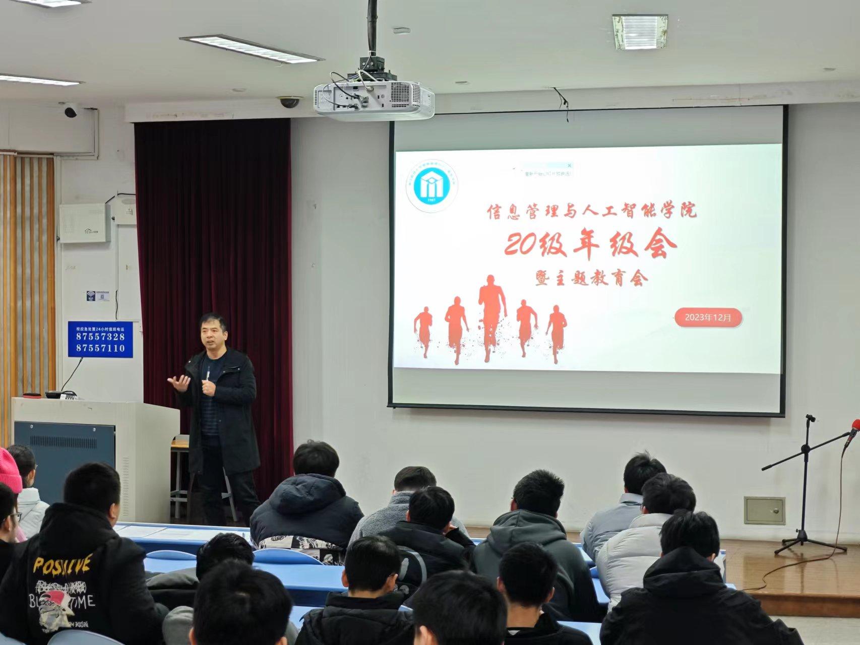 学子就业能力,全力护航20级毕业生高质量充分就业,落实毕业、实习要求,同时加强同学们安全意识。12月28日,信息管理与人工智能学院20级年级大会暨主题教育会在A101教室顺利开展。院长助理陈明晶,带班辅导员洪宝华、吴泽勇,高顿教育黄娇红老师就毕业生实习、就业、国内外升学、校园安全等相关事项答疑解惑、专题分享。