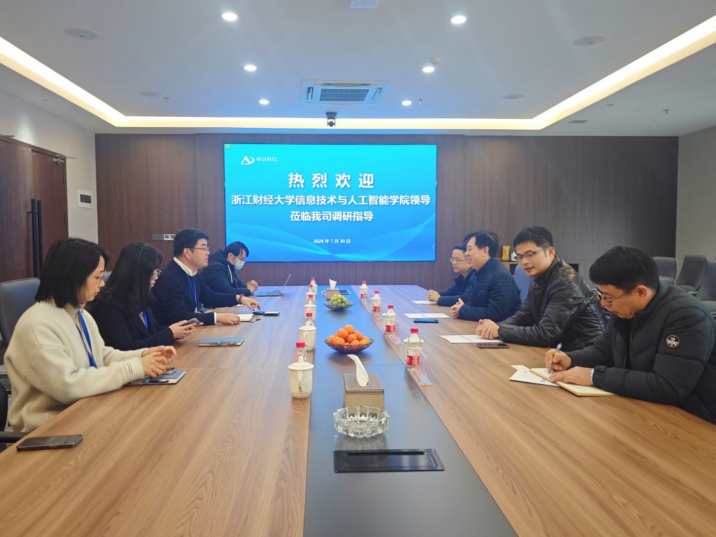 院长张帅,党委书记吴翼泽,副院长林剑,实验中心主任、社会培训中心主任章华赴杭州峰景科技有限公司访企拓岗,受到了杭州峰景科技有限公司董事长周金满、总裁沈忱、副总裁余艳及相关部门负责人的热情接待。