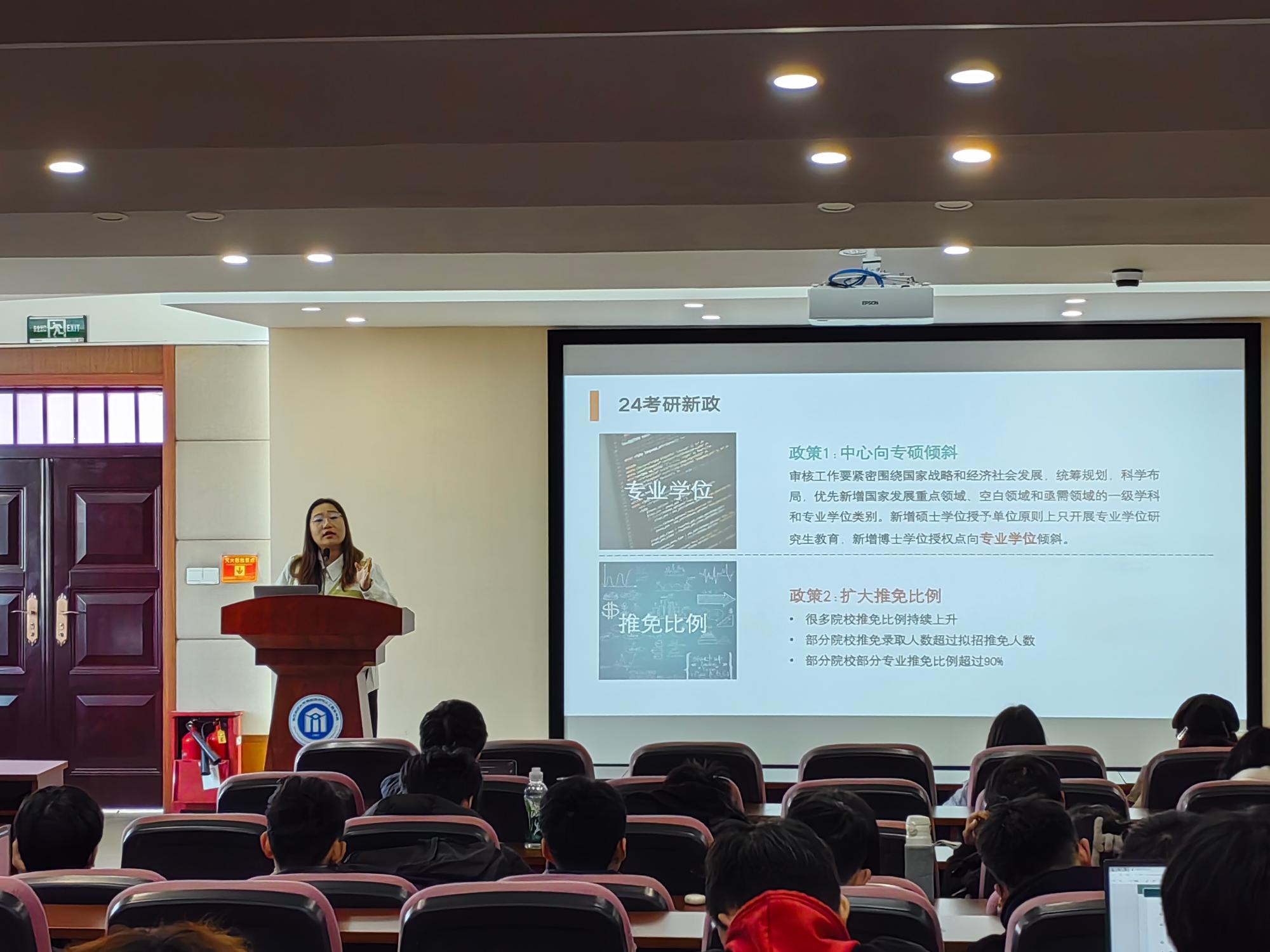 邀请到高顿教育研究院高级讲师张斓曦在学院楼302报告厅作了题为“考研如何复习”的专题讲座。讲座由学院辅导员马硕主持,多年级学生参加了此次讲座。