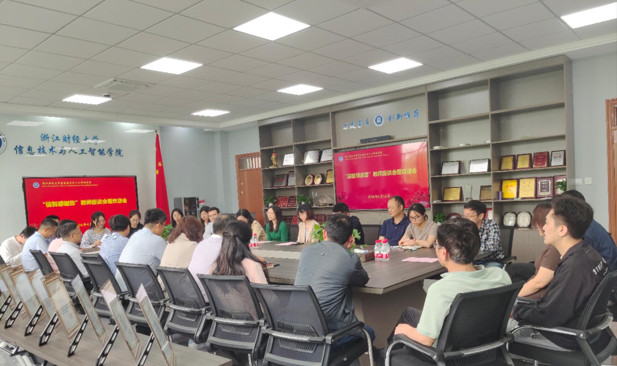 教师座谈会暨欢送会在学院楼404会议室圆满举行。学院领导班子成员、教职工代表参会,会议由党委书记吴翼泽主持。大家面对面交流,回忆在信智工作、生活的点点滴滴。