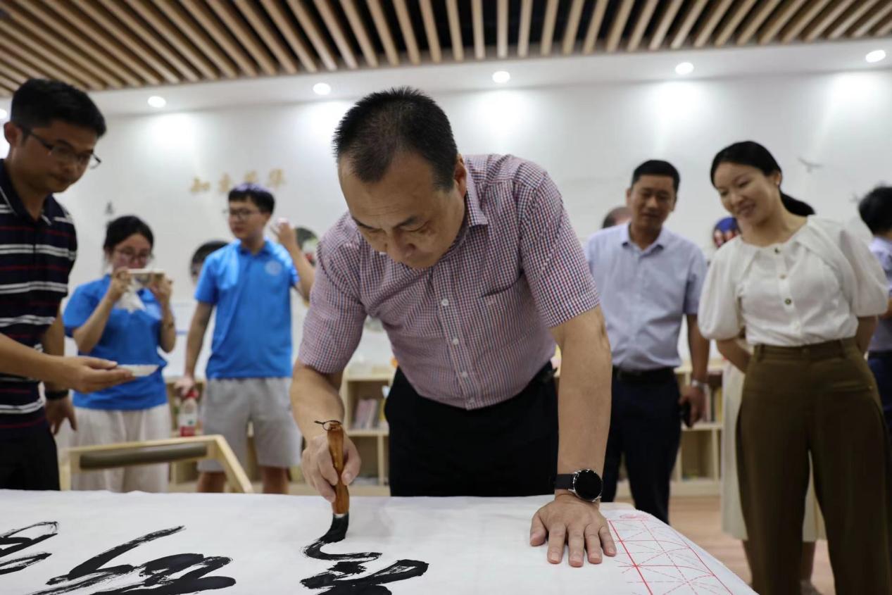 李金昌听取了实践团的现场活动情况汇报,初步了解了衙前镇和凤凰村的发展历程与建设情况,并赠予凤凰村颐乐养中心“老有所为”四字墨宝。