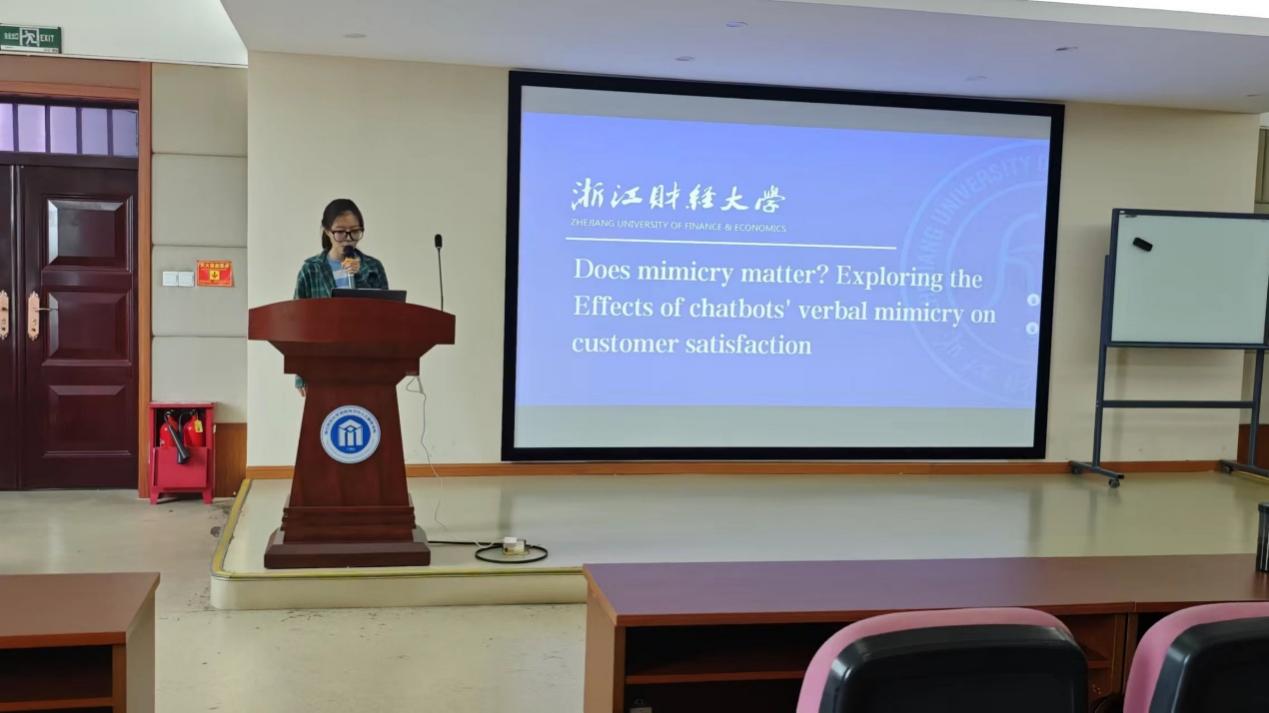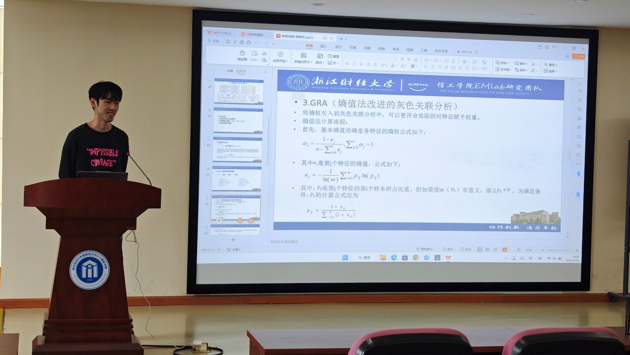 首先,陈珂雨、顾建阳、皇甫旭平、韩佳芮以及金沁雨同学,分别就“Does mimicry matter? Exploring the Effects of chatbotsverbal mimicry on customer satisfaction”、“基于信用风险的机器学习可解释性方法”、“AI大模型原理及应用介绍”等议题进行了深入的探讨与分享。他们的研究不仅在学术上有着重要意义,也为现实世界的技术应用提供了新的思路与启示。还有对科研工具分享的精彩介绍,以及关于人工蜂群算法应用于在制造系统的研究成果,让参会者们对于前沿技术的发展有了更深入的了解和认识。
