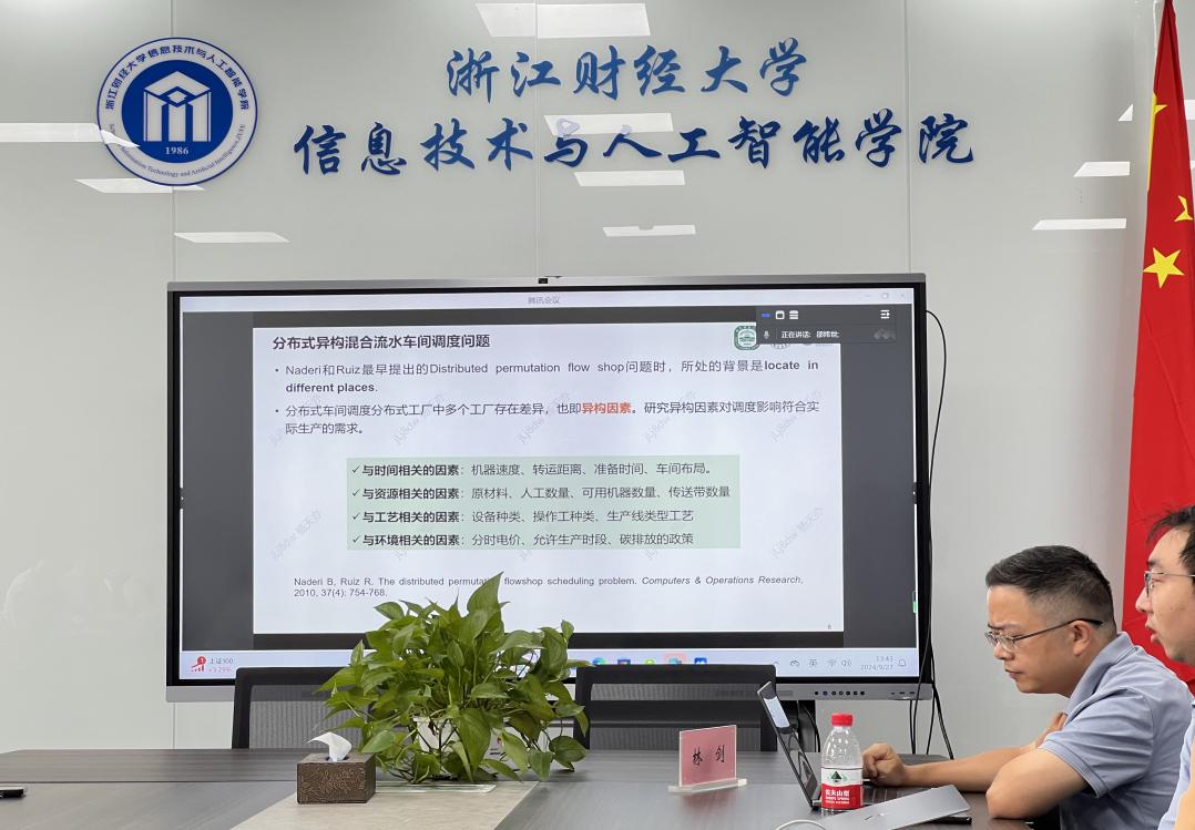 邀请到了南京师范大学计算机与电子信息学院的邵炜世副教授,作了主题为《分布式异构混合流水车间调度优化》的讲座,此次讲座由科研副院长林剑教授主持,雷速体育app