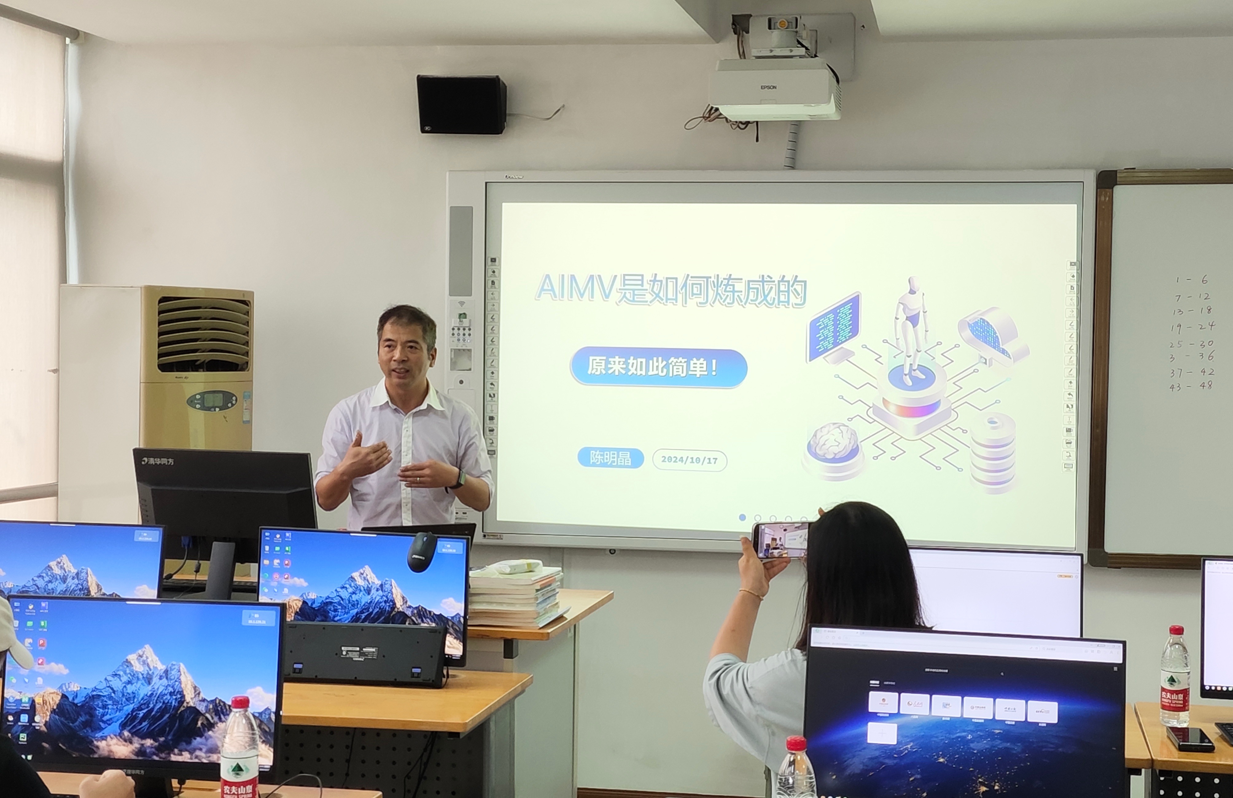 随后,陈明晶老师为开元中学的老师们带来了一堂生动有趣的利用AIGC制作AIMV的课程。陈老师深入浅出地讲解了AIGC技术的原理和应用,并通过实际操作演示了如何利用这一技术快速制作出高质量的AIMV作品。他强调,AIGC技术能够极大地提升创作效率,对于学生来说,还能够激发学生的创造力和想象力,是科技思政教育的重要工具。