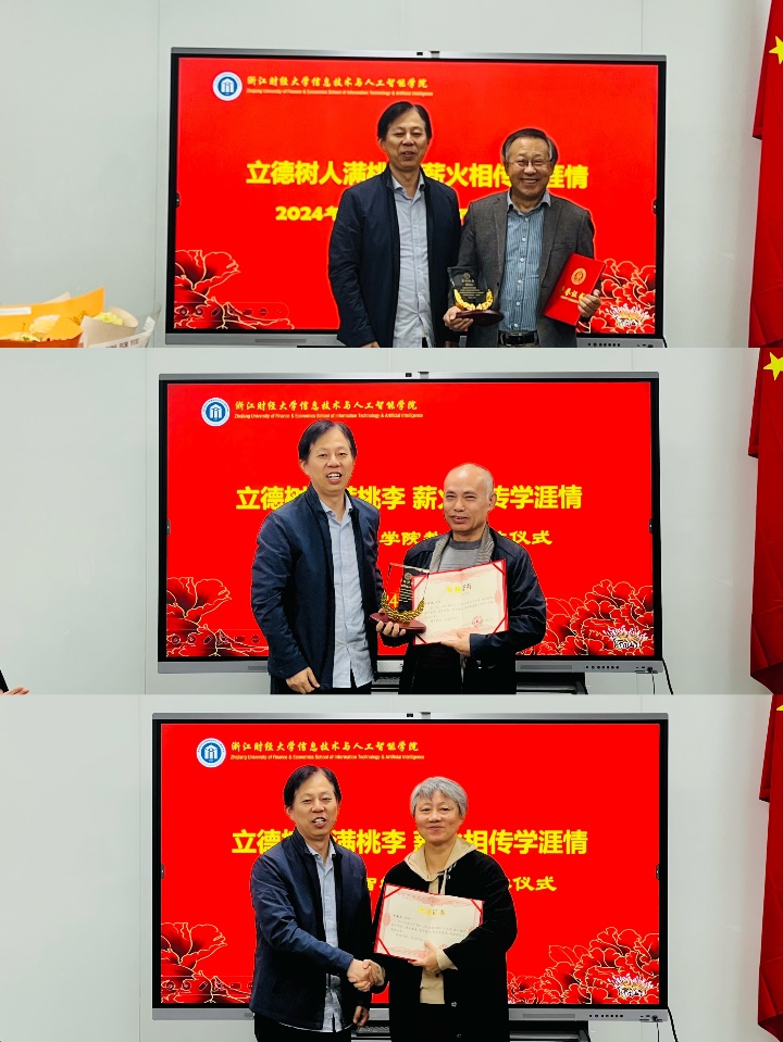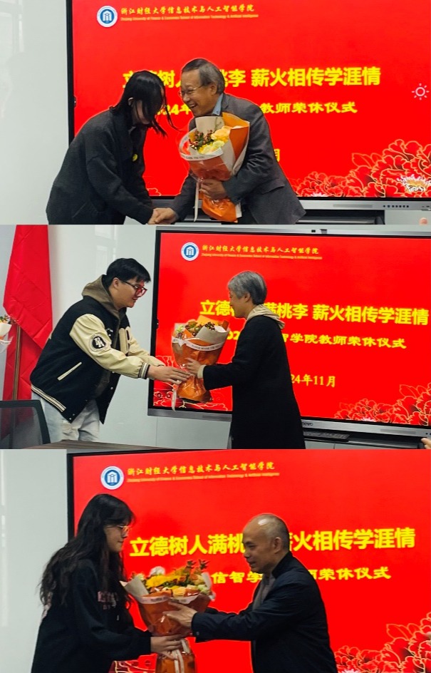 11月19日中午,学院为2024年退休的李杰、于滟文、邓绪斌三位教师举行了隆重的荣休仪式。学院院长张帅、党委书记吴翼泽等院领导班子、系部主任和众多教师共同见证了这一欢快、感人、温馨的时刻。