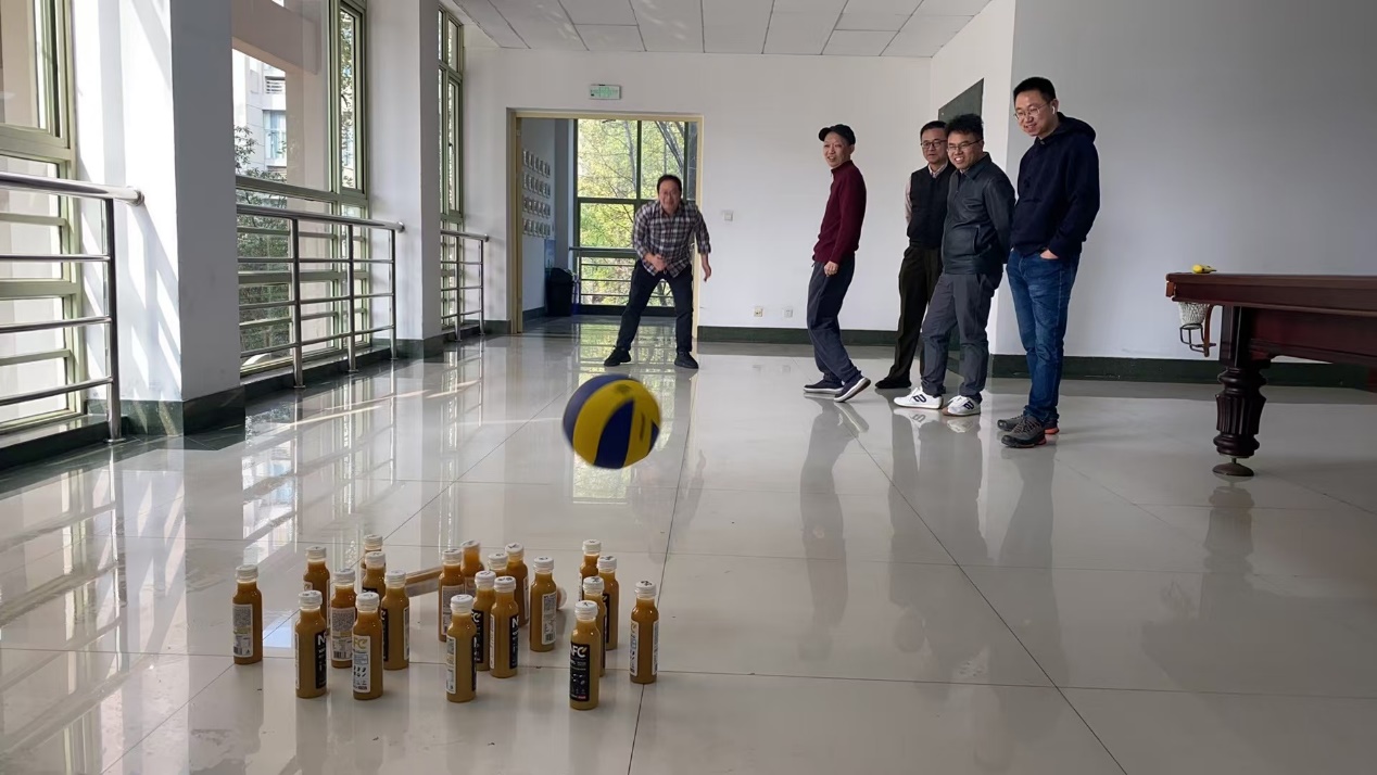 活动就地取材,用饮料瓶和排球作为道具,进行一场别开生面的趣味保龄球比赛,大家都积极参与,争先恐后进行尝试,虽然道具简陋但完全不影响大家活动的热情。比赛过程中,你为我加油,我为你喝彩,欢声笑语此起彼伏。