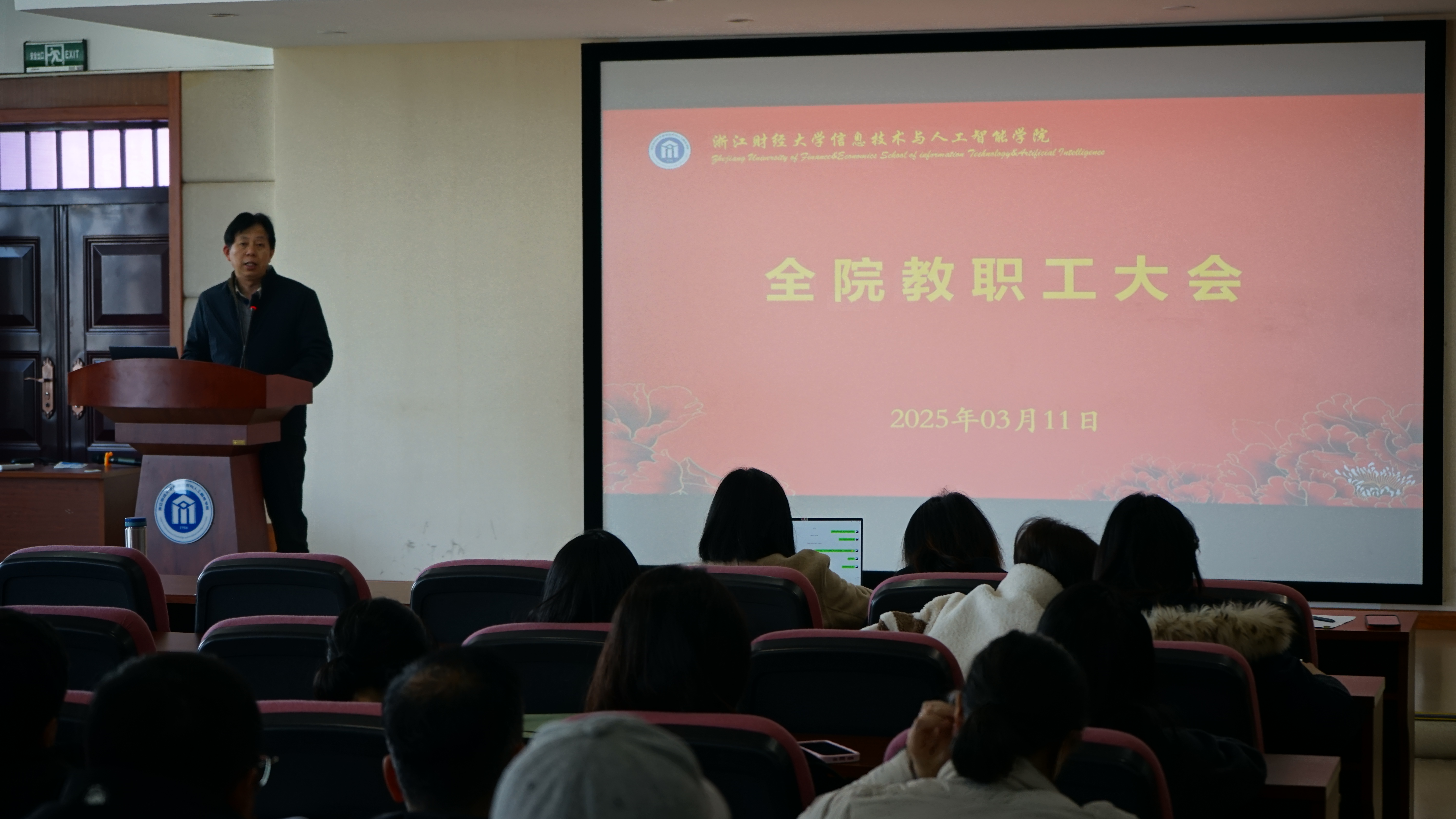 大会伊始,院长张帅首先对学院过去一年的工作做了简要总结,并围绕"一院一策"改革方案,对人才引育、教育教学及社会服务等领域重点工作进行了系统部署。针对当前学院发展面临的新机遇新挑战,他号召教师们积极作为、攻坚克难,共同推动学院发展。