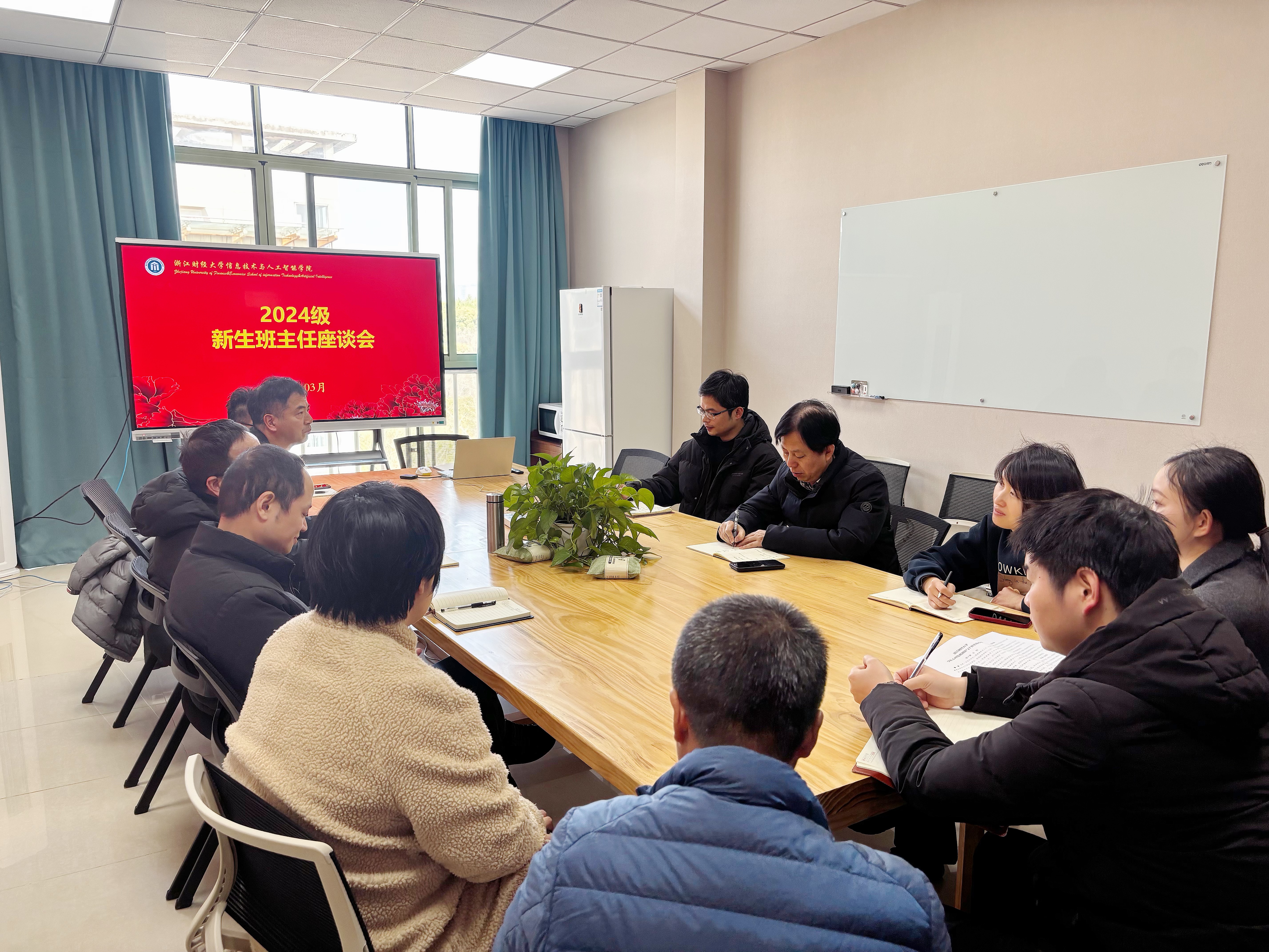 2024级新生班主任座谈会于9号楼506会议室顺利召开,学院院长张帅,党委书记吴翼泽,党委副书记吴轶韵,新生班主任、带班辅导员参加此次座谈会。