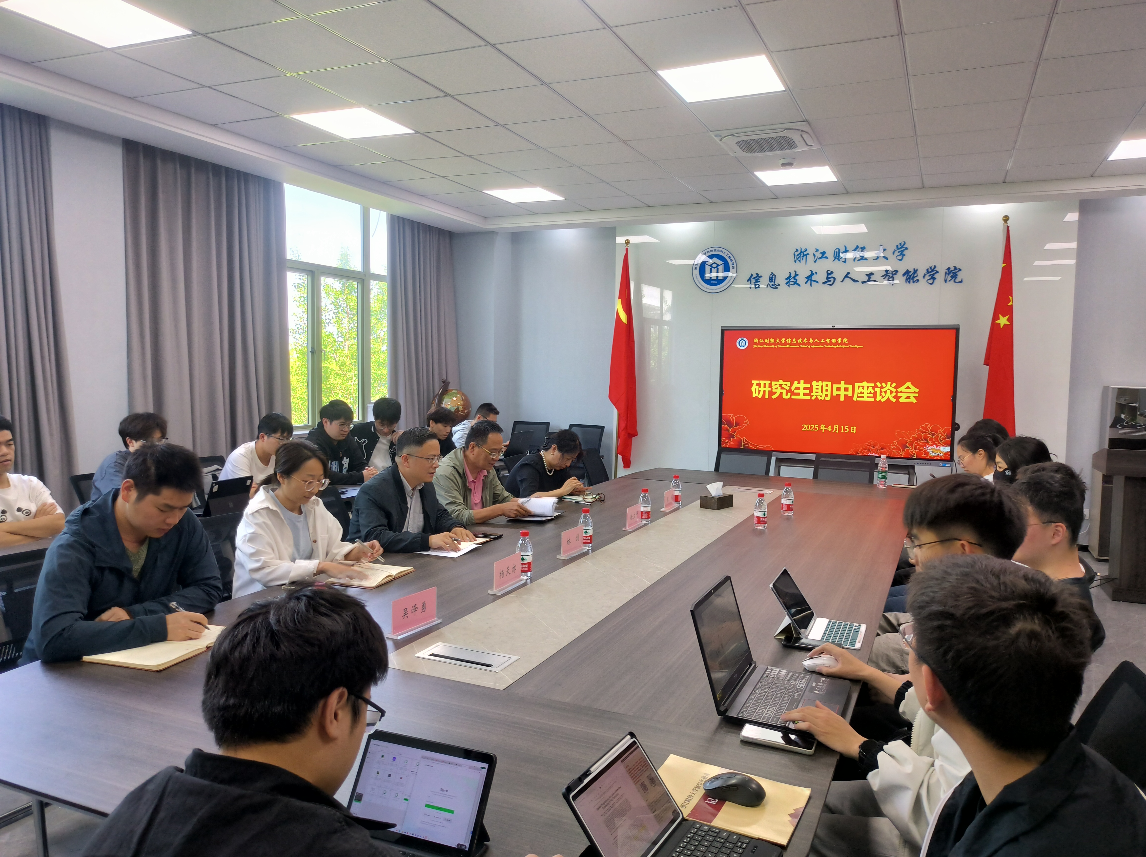 于4月15日下午在9号楼404会议室举行了2024-2025学年春季学期研究生期中座谈会。学院副院长林剑教授、学校督导组徐文平教授、研究生秘书杨天亦,研究生辅导员吴泽勇,导师代表张林以及24级全体研究生和博士生参加了此次座谈会。