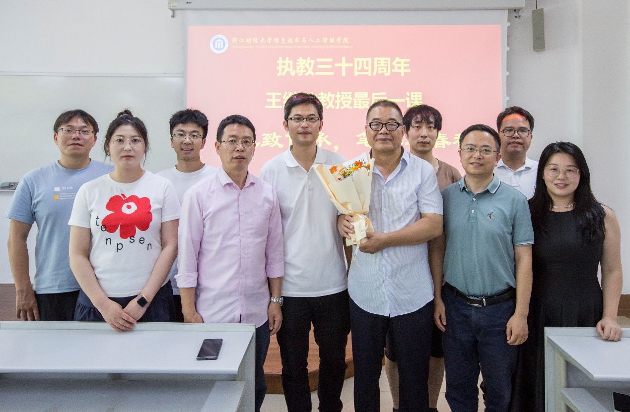 C104教室温情上演。学院为即将告别讲台、从教34周年的王继林教授举办了《信息安全基础》课程结课暨荣休仪式。学院党委书记吴翼泽、副院长林剑及青年教师代表共同出席,见证这一感人时刻。
