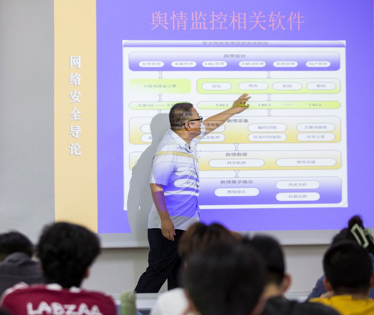 “同学们好!”王教授亲切回应,示意大家落座。他以近期发生的网络安全事件为切入点,为同学们带来了《信息安全基础》的“最后一课”。“看似遥远的网络攻击,实则暗藏于生活角落。”王教授深入浅出地讲解了网络安全管理的关键内容、策略制定依据、风险评估流程及应急响应机制,并阐述了中国特色网络文化建设的内涵。课程尾声,他简要总结了本学期的教学内容,并对学院领导、同事及全体学生表达了真挚的感谢。