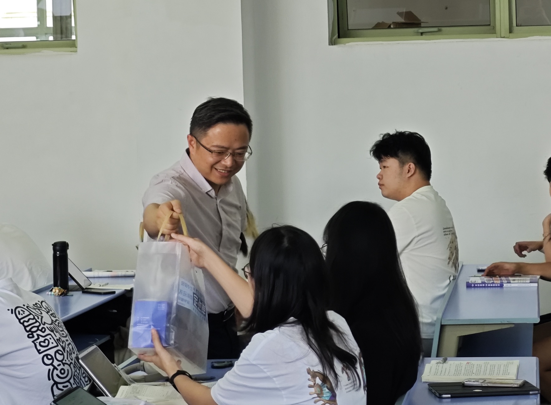 院长张帅、副院长林剑、朱凌、党委副书记吴轶韵及全体辅导员深入考研自习室,看望奋战在备考一线的2026届考研学子,送上精心准备的“考研能量包”,以温情驱散酷暑,用鼓舞点燃斗志。