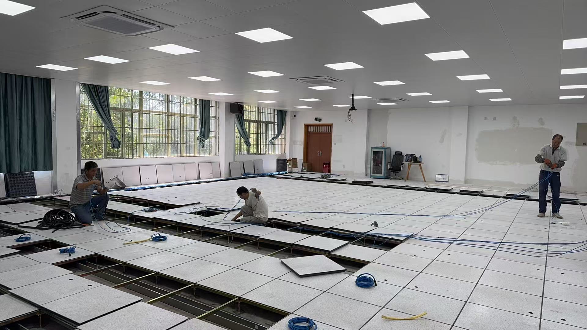 资源利用更节约。为降低成本、践行绿色理念,计算机软件实验室对原有带孔洞的静电地板,通过补洞、贴板、打磨等工艺修复至完好状态;同时重新启用原有功能完好的音箱、功放、话筒等设备,将节约资金投入核心设备购置,实现资源高效利用。