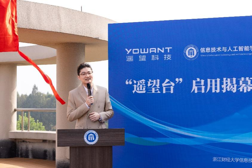 随后,遥望科技董事长兼CEO谢如栋深情回顾了在母校求学的珍贵时光。他表示,母校所赋予其严谨的思考态度、务实的人生品格、勇毅的实干精神,都成为他日后创新创业征程上不可或缺的扎实根基。他强调,遥望科技从初创到行业领先,其成就正是母校育人成效的生动体现,将持续深化与母校在人才培养、科研创新等领域的合作,以实际行动回馈母校的培育之恩,以更优异的成绩彰显浙财校友担当,为国家数字经济发展与巩固实体经济贡献更多“遥望力量”。