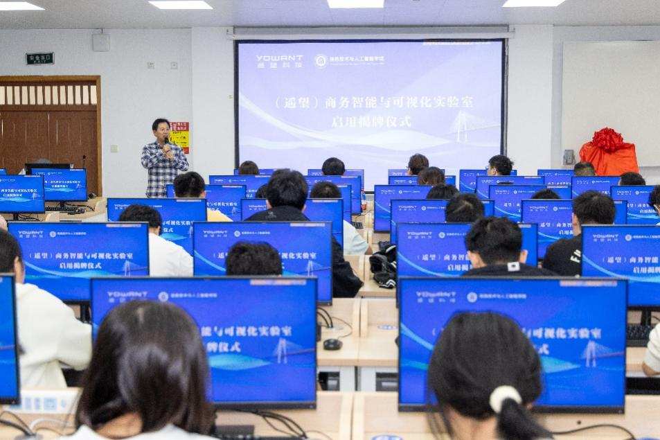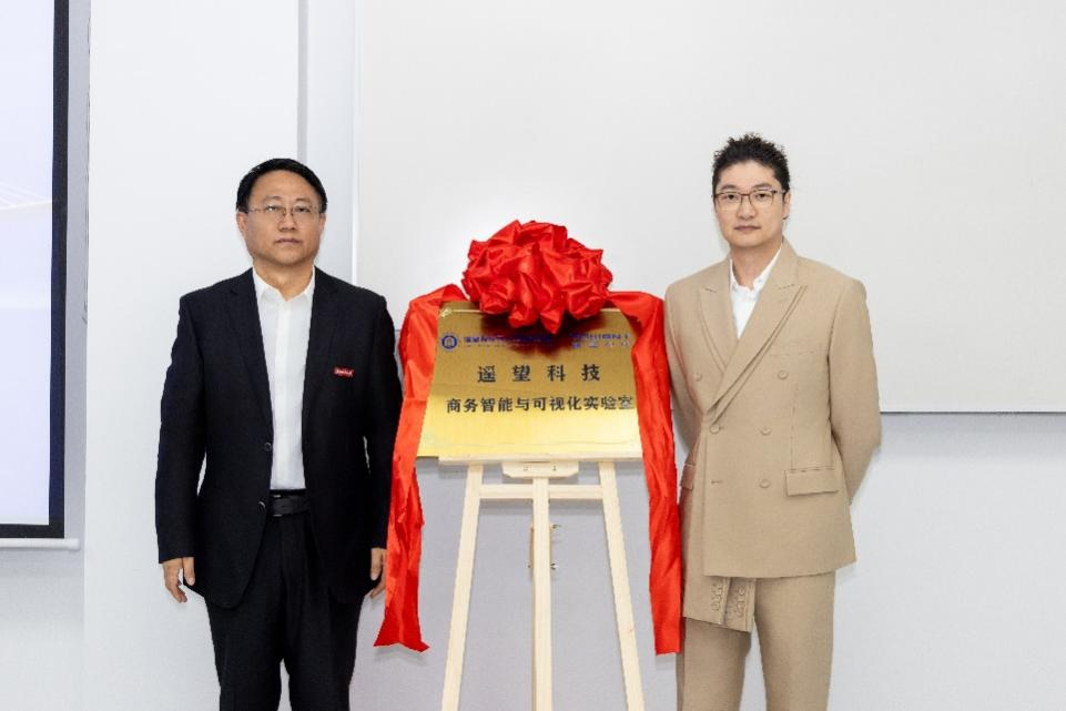 “遥望台”揭牌仪式前,由“遥望基金”支持建设的遥望科技“商务智能与可视化实验室”也正式揭牌启用。副校长李占荣、校友谢如栋共同为遥望科技“商务智能与可视化实验室”揭牌,现场响起了热烈的掌声,这标志着雷速体育app