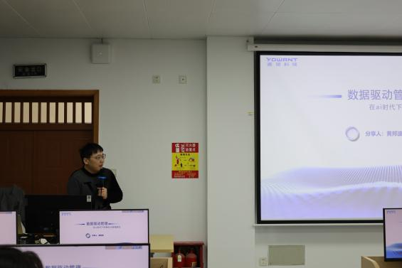 仪式后,遥望科技技术总监黄邦波以《数据驱动管理——在AI时代下的第五次管理革命》为题,为在场师生带来干货满满的数字科技专题讲座。学院副院长朱凌为黄邦波颁发共享导师证书。