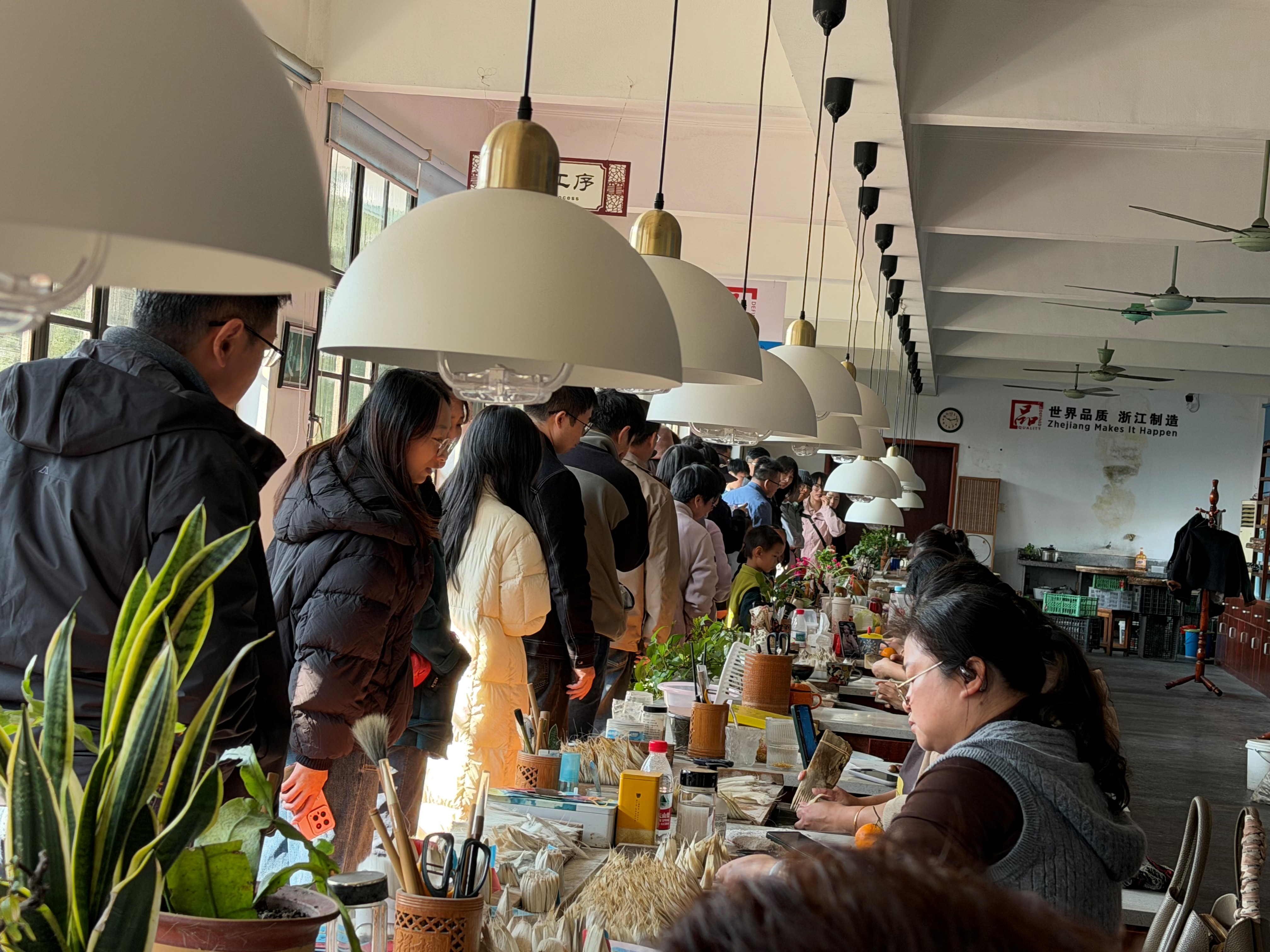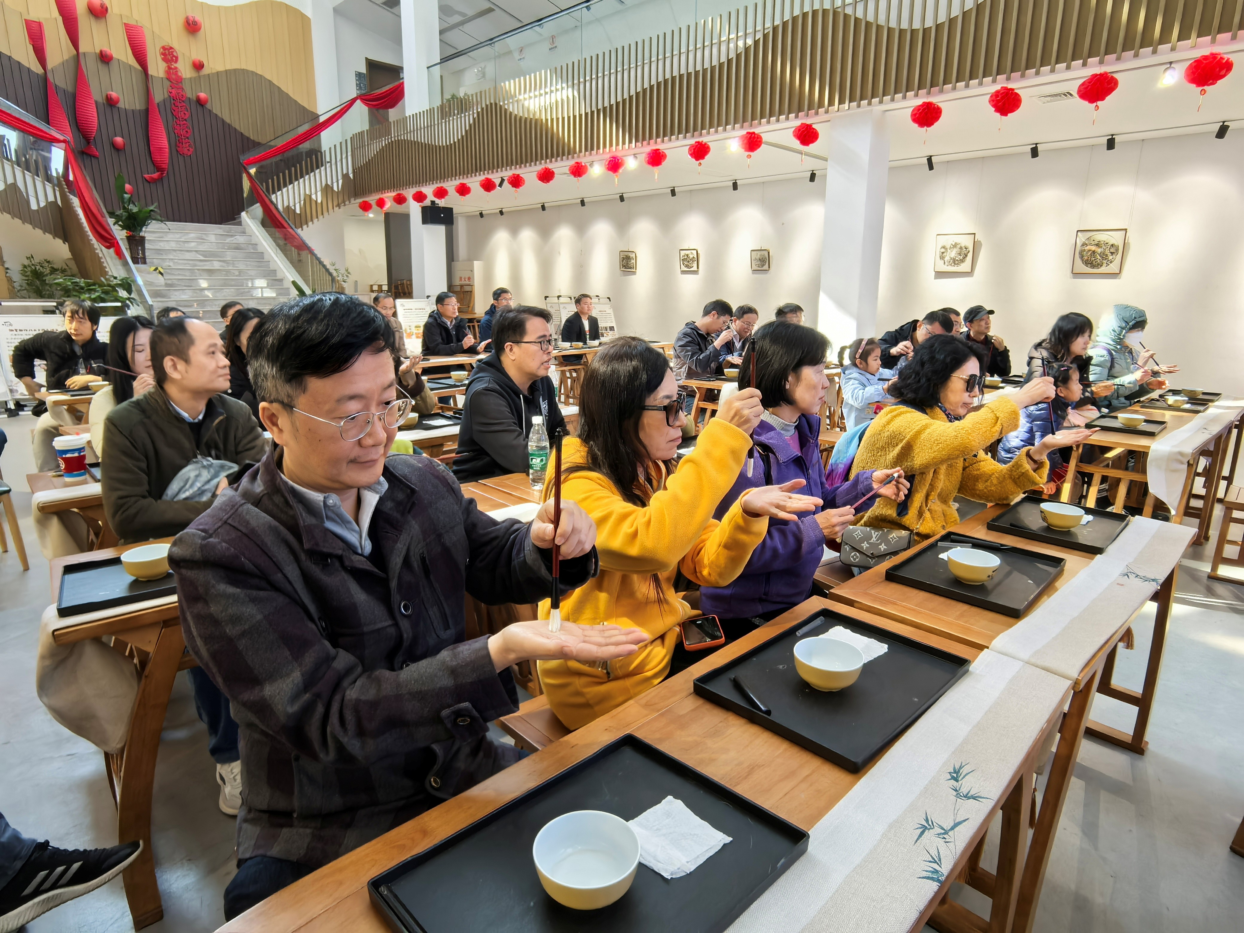 “软毫裁得秋光细,匠心织就笔墨香”。行至湖笔小镇,非遗技艺的魅力扑面而来。师生们走进制笔工坊:看匠人们捻毫、修锋的细腻手法,亲手体验湖笔制作的关键工序,在参观工厂的过程中,读懂“一支笔从毛到器”的千年传承,指尖的墨香成了秋日出游的独特纪念。