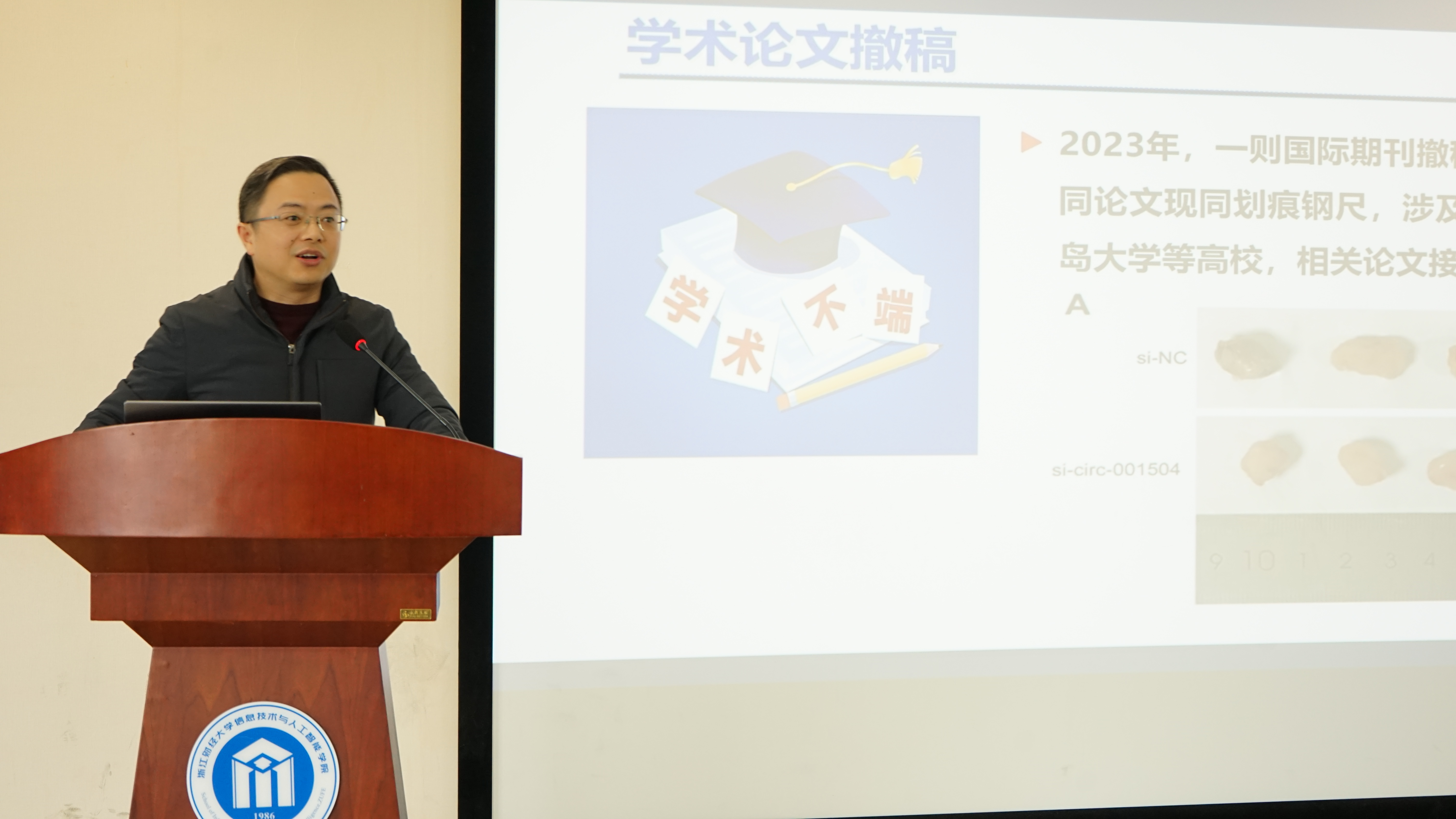 为进一步强化全院教职工科研诚信意识,规范科研行为,涵养求真务实的学术风气,12月23日下午,我院组织开展科研诚信专题学习教育活动。活动由副院长林剑教授主讲,全院教职工参加学习。