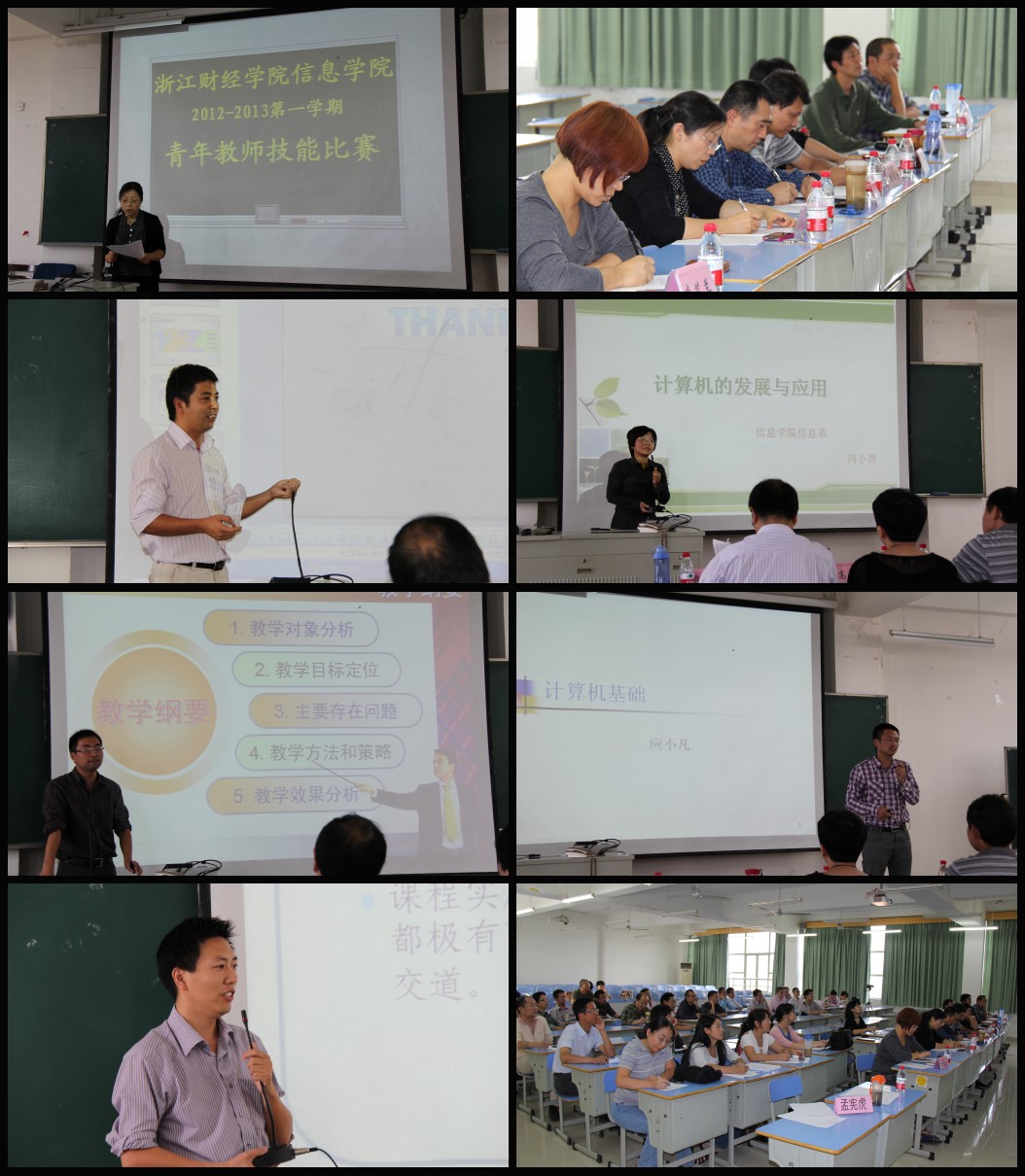 为进一步提高青年教师的教育教学技能水平,推动和促进课程教学范式改革,提高教育教学质量,学院组织了教学观摩活动并于10月9日下午举行了信息学院2012-2013第一学期教学技能比赛。
