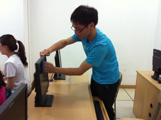 为保证此次活动顺利高效展开,院青协专门购进两套专业电脑清洁工具外加清洁材料。下午1点半,十四名志愿者在学院楼机房开始清洁工作。志愿者们热情高涨,工作耐心,动作迅速,成果显著,9102机房电脑洁净一新。