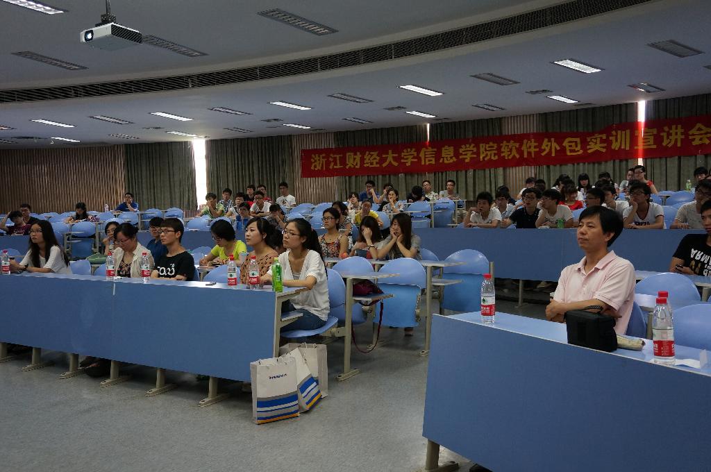 软件外包实训宣讲会在教学楼A-201教室隆重举行。浙大网新和归谷两大集团作为雷速体育app