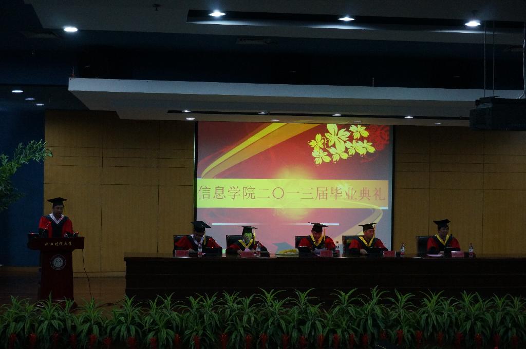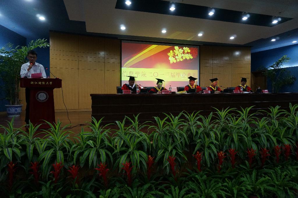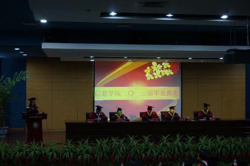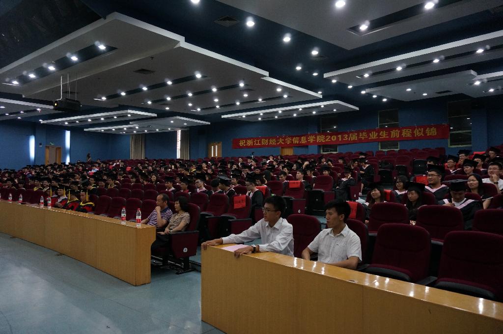 6月20日下午两点,浙江财经大学信息学院2013届毕业典礼在学术一报隆重举行。信息学院院长张文宇、党总支书记王衍、副院长马雪英、副院长张帅、党总支副书记何维超、信息系主任齐峰、计算机系主任傅卫卫、电子商务系主任陈远高等老师出席典礼,同时与会的有在校学生代表、家长代表和2013届毕业生,三百余人济济一堂。