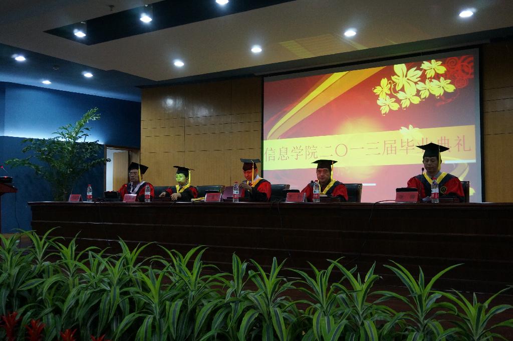 最后全体毕业生上台,由学院领导将学士帽上的黑色流苏从右边拨到左边,并正式授予毕业生们学士学位。随着相机快门“咔嚓”声,2013届信息学院毕业典礼在全体毕业生与学院领导老师的合影中落幕。所有的感激,不舍,展望都定格在此瞬间。