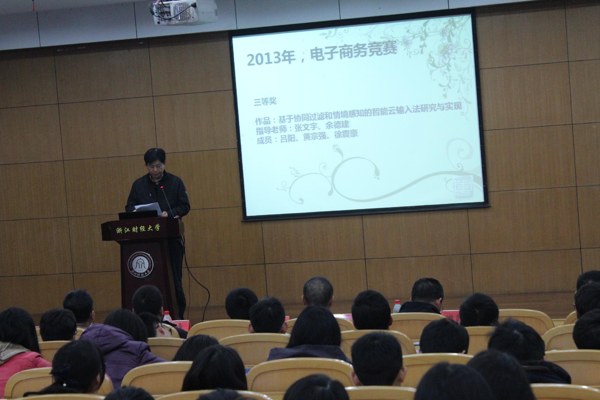 学子在2012-2013年度电子商务竞赛、ACM程序设计竞赛、电子设计竞赛、“挑战杯”大学生系列科技学术竞赛、“蓝桥杯”竞赛四大竞赛中获奖名单以及新苗立项计划以及全国大学生创新创业等立项名单,充分给予优秀团队及个人的肯定。同时现场举行2012-2013年度信息学院各大学科竞赛颁奖仪式,集体表彰在各大学科竞赛及立项中取得优异成绩的团队及个人。