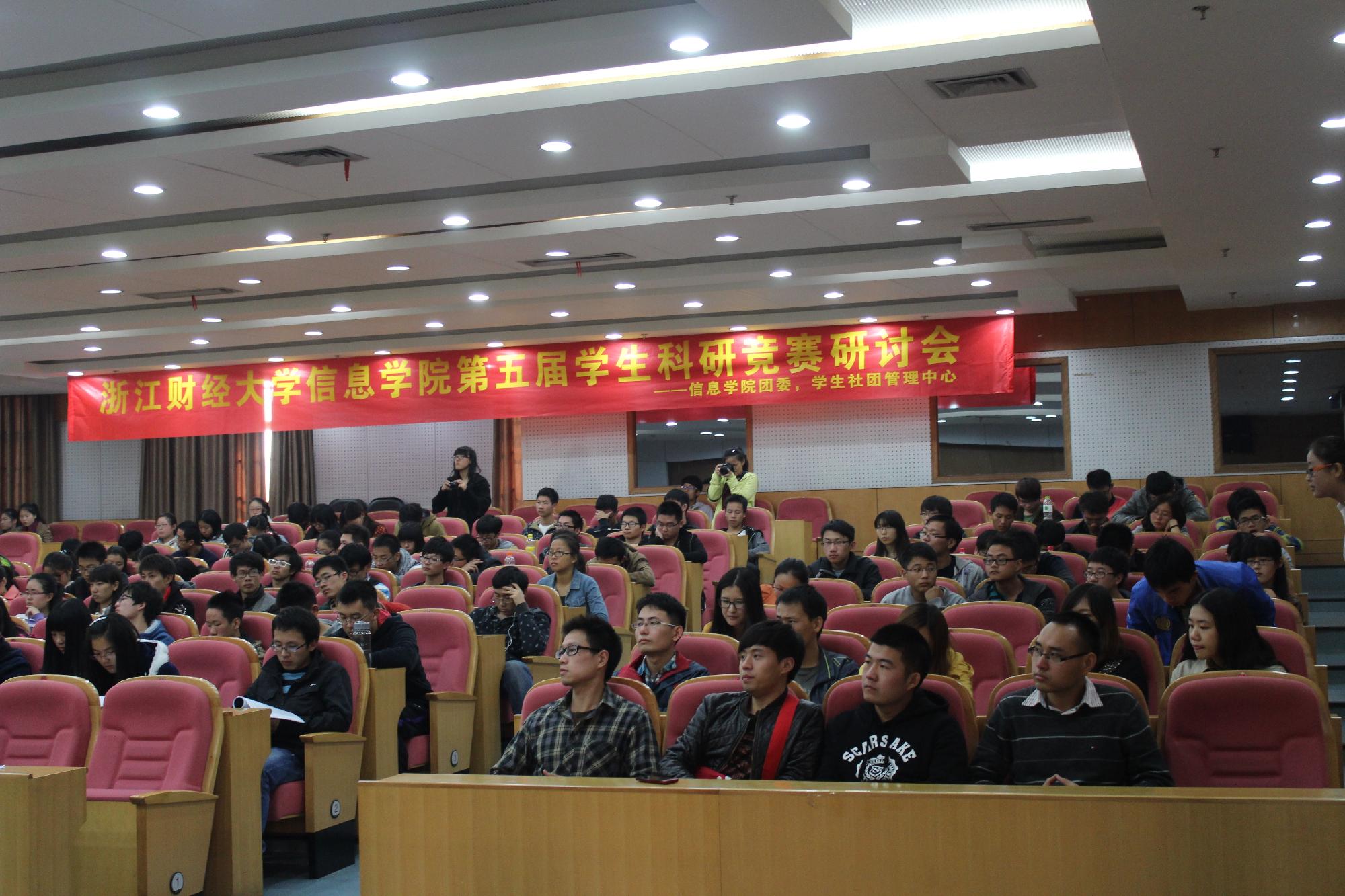 第五届学生科研竞赛研讨会在学术第二报告厅隆重举行,科研处副处长金通老师,信息学院党总支书记王衍老师,党总支副书记何维超老师,副院长张帅老师,计算机系系主任傅卫卫老师,电子商务系系主任陈远高老师,竞赛指导老师陈明晶老师、陈琰宏老师等出席研讨会,同时信息学院各专业学生代表也积极参加了此次研讨会。